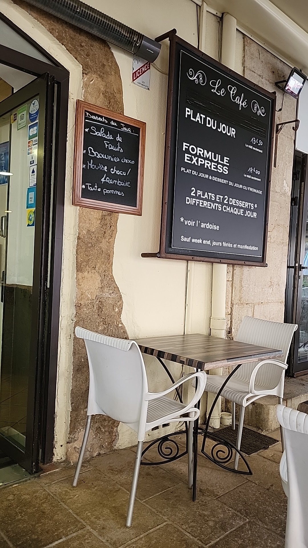 Les prix ne correspondent pas au prix affiché sur l'ardoise devant le restaurant Réglé en espèce pas de ticket , la caisse était en panne ???