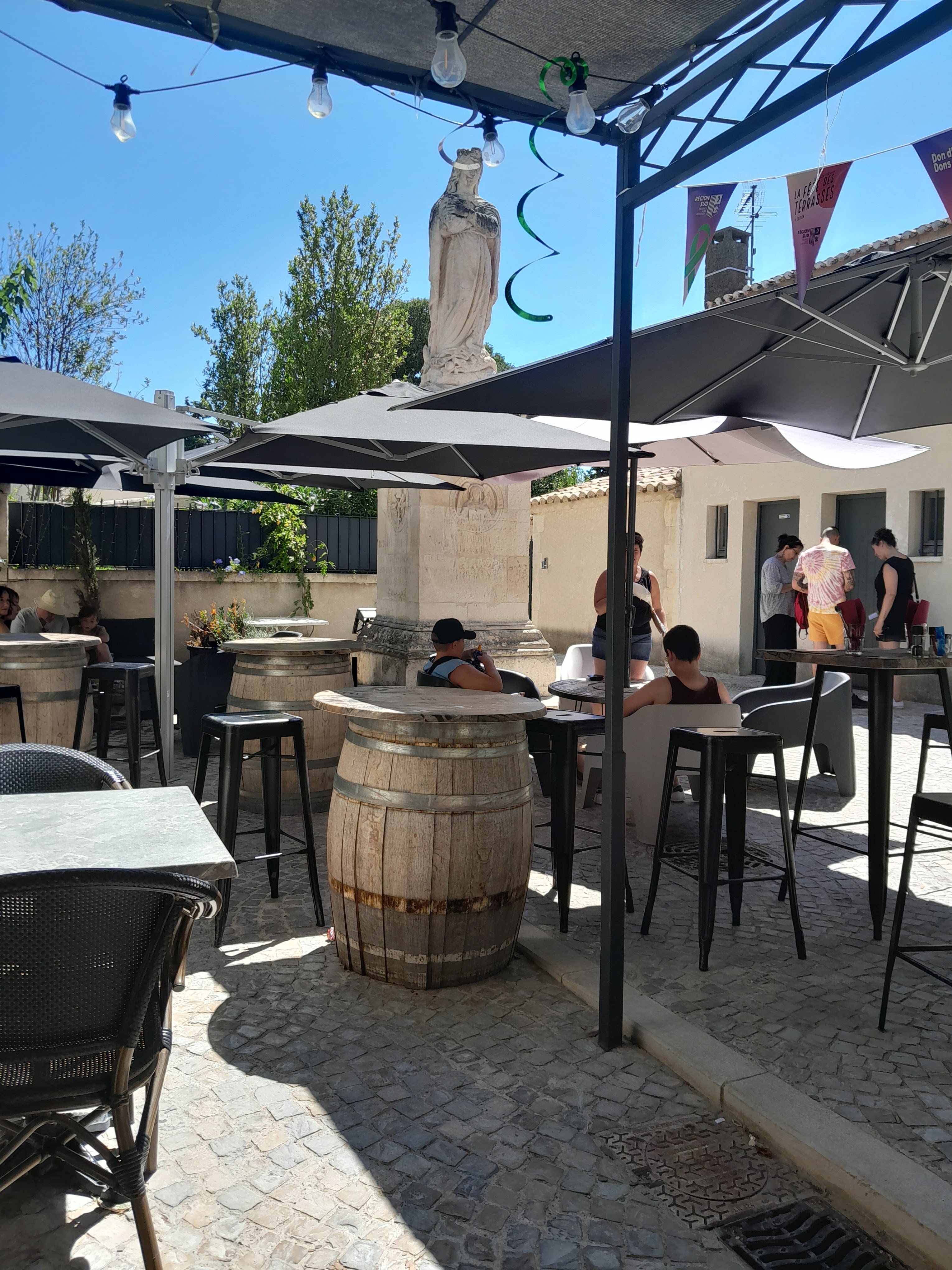 Lieu de détente ou place du village. Et un service détendu. Vive la Provence :-)