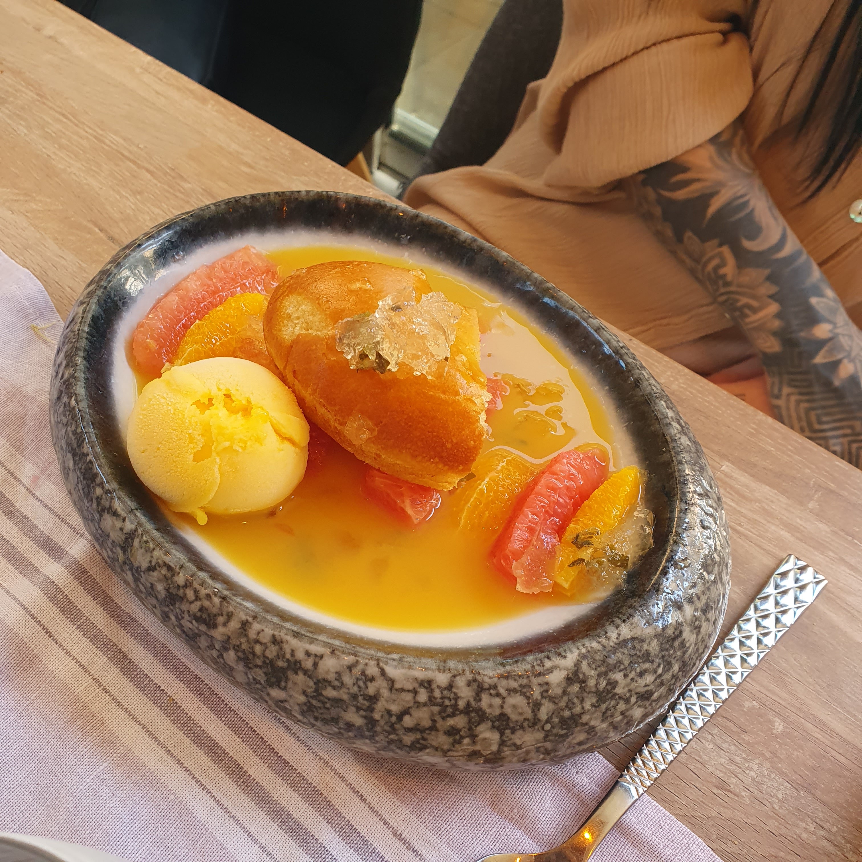 Le service est beaucoup trooooooooooop long 45 min à attendre sans qu’on nous demande si on prend un dessert…. Et je vous laisse imaginer le temps d’attente pour l’addition ! Heureusement que le lieu est sympa et bien placé et que les plats sont beaux et bons .