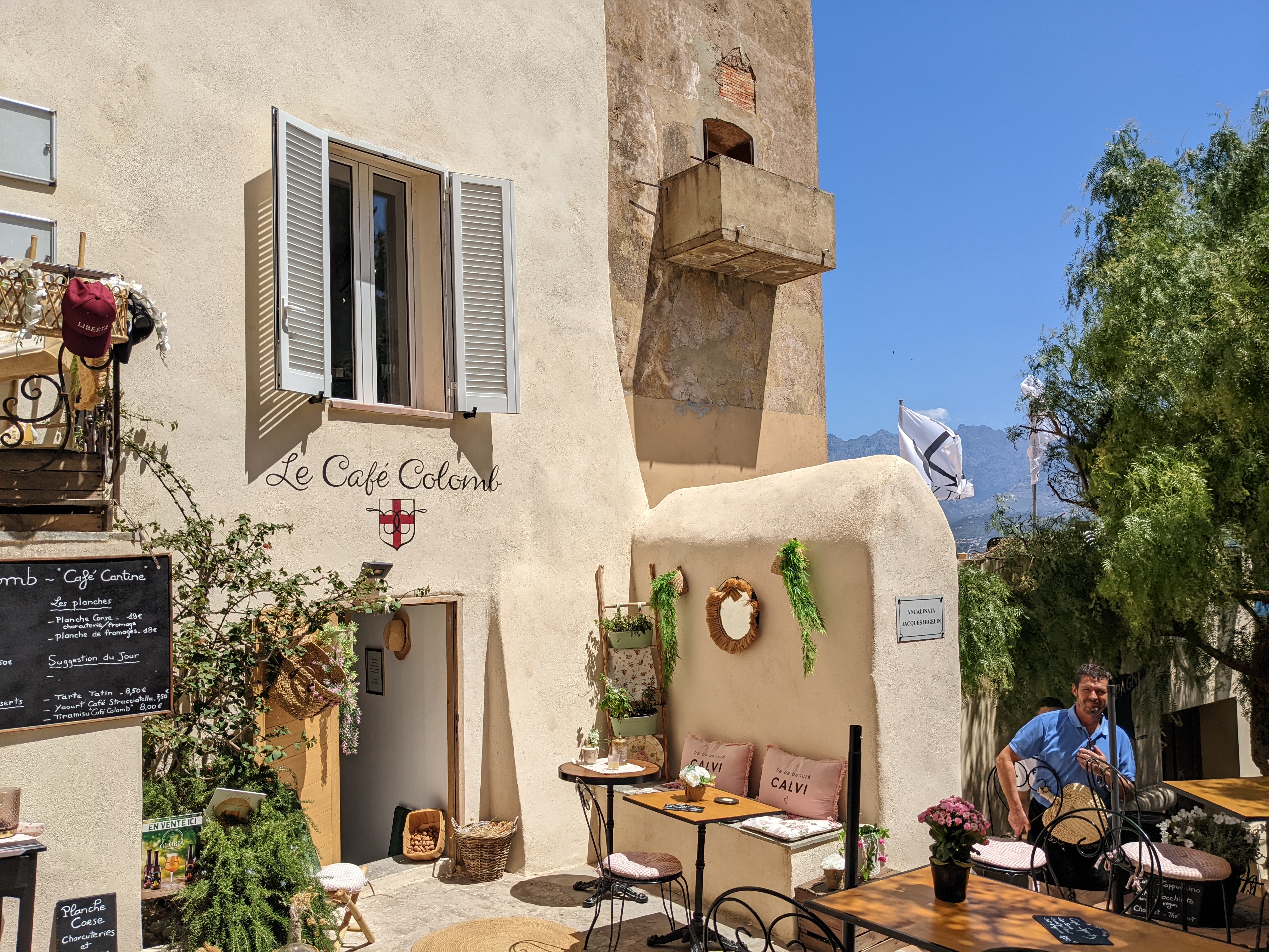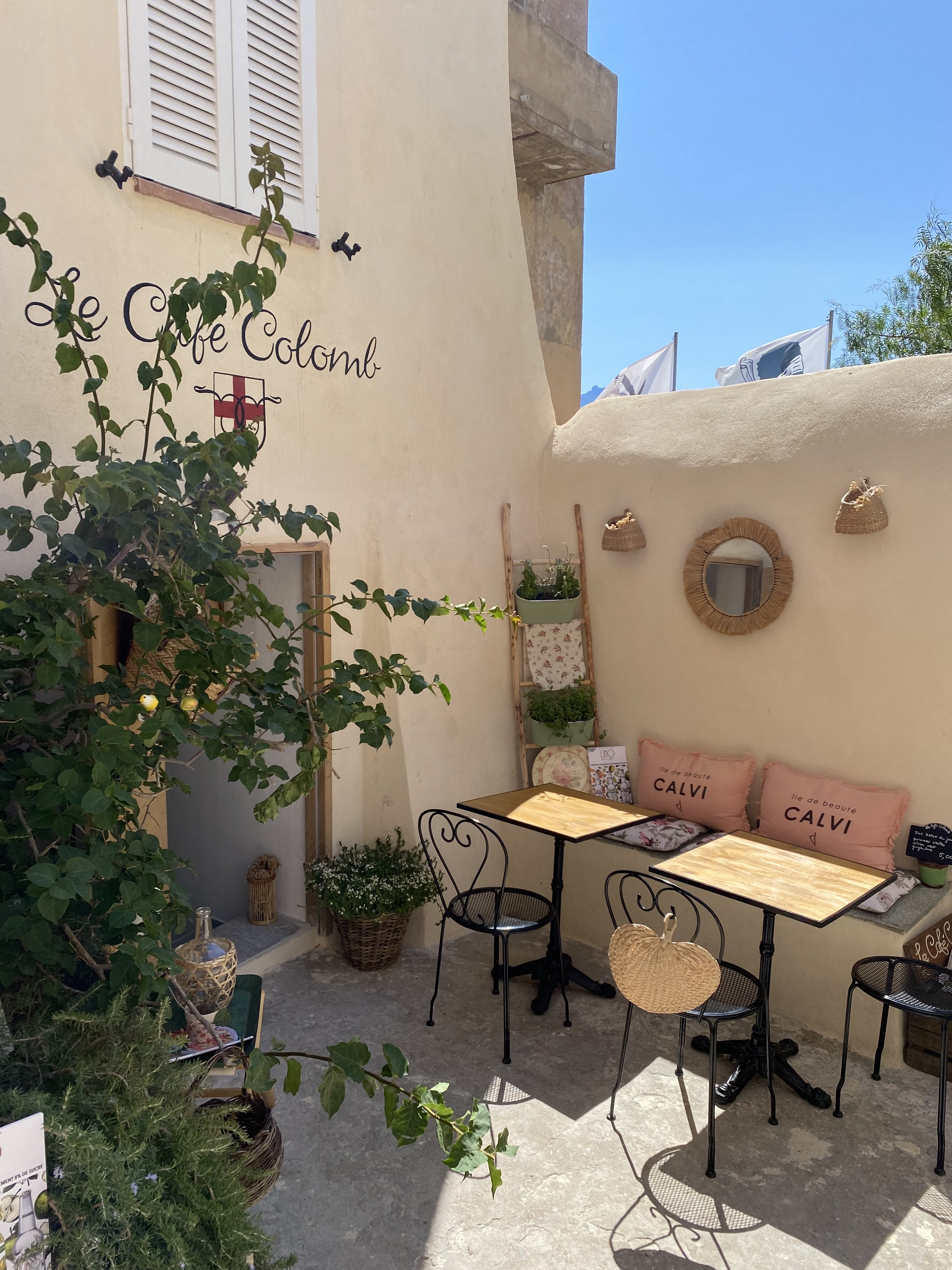 Un instant suspendu dans le temps, une terrasse à l'ombre, avec vue sur le port de Calvi et quelques Oliviers, une brise a la fois apaisante et rafraîchissante, un accueil simple et chaleureux, des plats faits maisons, mettant à l'honneur les produits Corse, a la fois originaux et réconfortants, et vous aurez tous les éléments qui caractérise une pause au Café Colon. merci pour ce moment et les recommandations de plages !