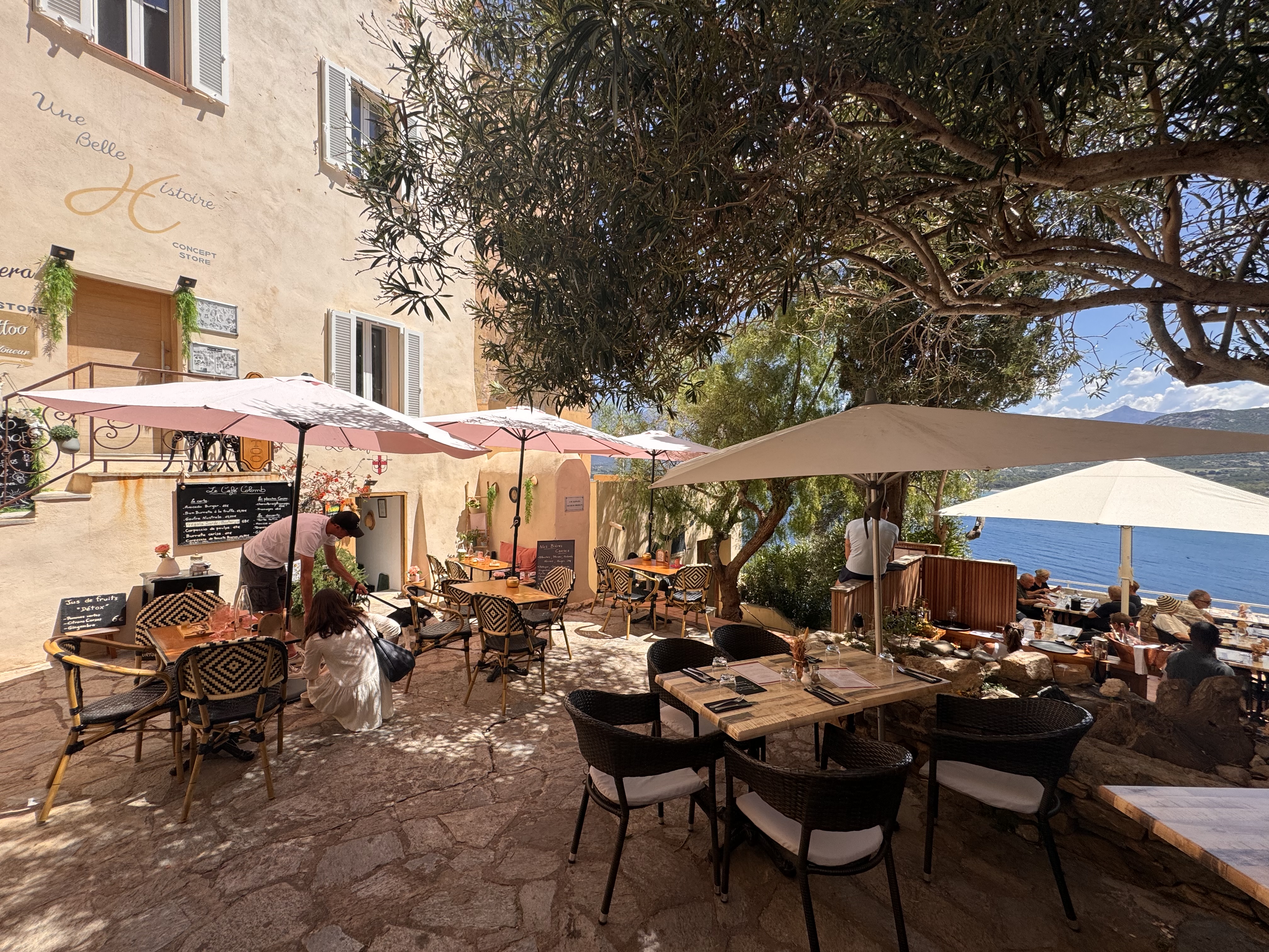 Au détour d'une ruelle nous sommes tombés sur ce café restaurant nous avons étaient attirés par la décoration extérieure et un magnifique petit chien qui tient la garde, l'accueil très sympathique du propriétaire et la vue ont conforté l'agréable moment que nous avons passés là-bas, sans compter sur le cocktail Cap Corse que nous avons adoré. Merci pour votre accueil chaleureux nous ne manquerons pas de venir vous voir afin de goûter votre cuisine à bientôt