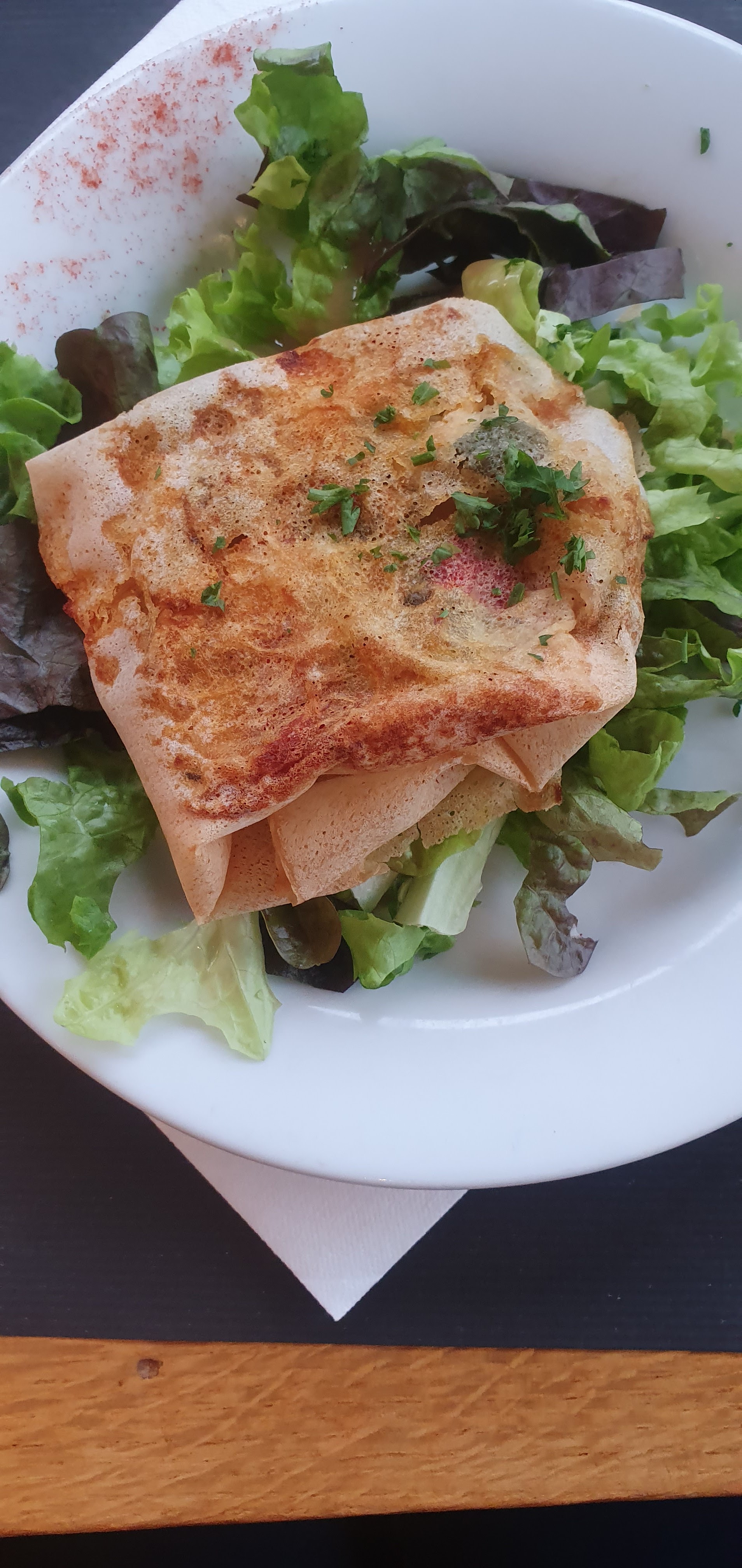 Nous avons été très bien reçu,sourire et bonne humeur au rendez-vous. Les plats sont copieux et délicieux à un prix raisonnable. Dommage que nous n ayons pas pu profiter de cadre intérieur joliment décoré. Je recommande !!!