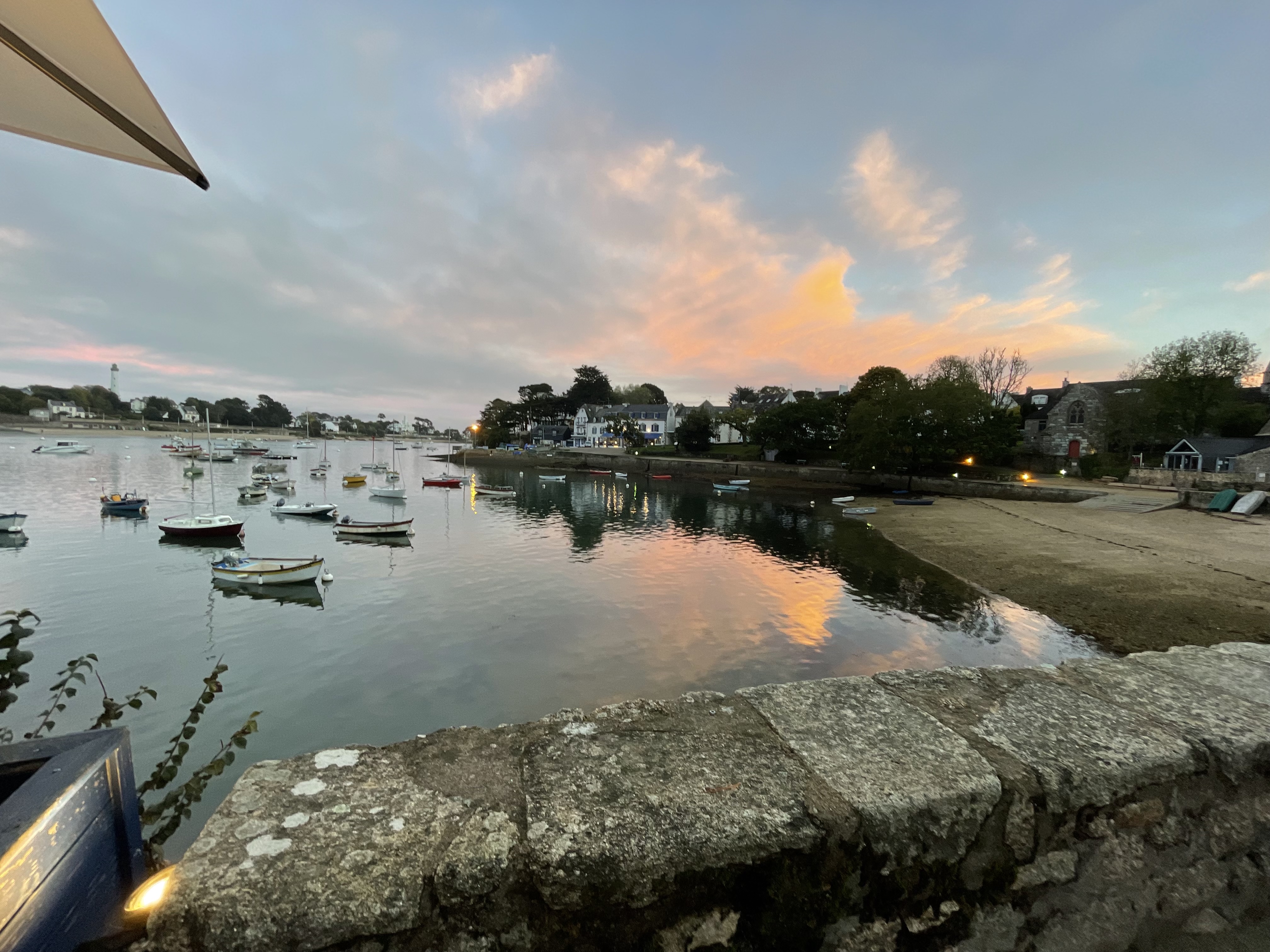 Venez à 10:00 du matin pour trouver de la place et vous passerez un super moment. Le soir c’est infernal pour un verre, on est venus le 8 août, la semaine de l’année, à 22:30, c’était fermé… (l’heure de fermeture sur Google maps n’est pas fiable) dur dur en plein été de refuser des clients pour un verre à cette heure ci. Il faut privilégier le café de la plage à l’île tudy le soir, ouvert réellement jusqu’à 1h00.