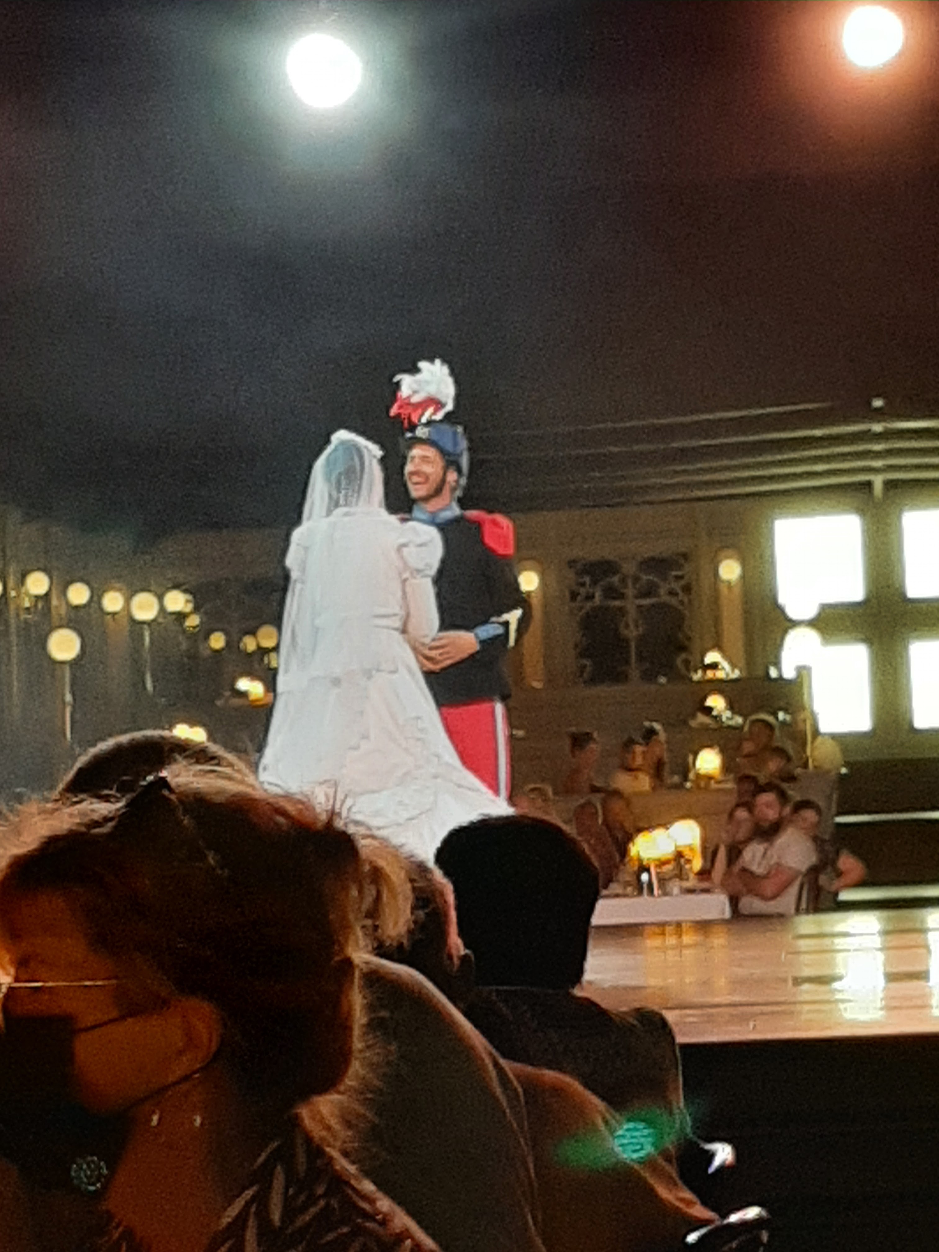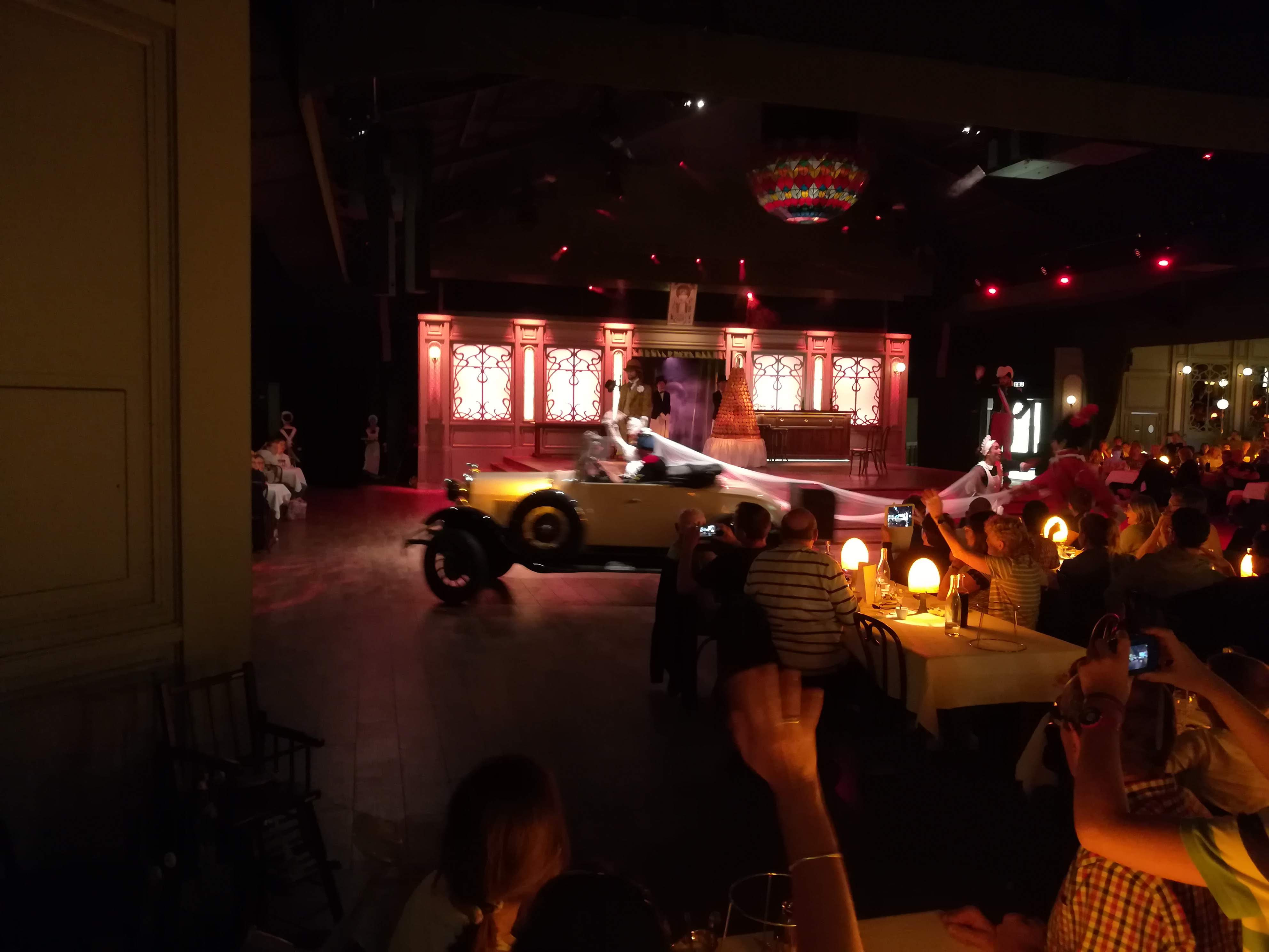 Un super moment. Je m'attendais à un repas moyen et cher. Et que le prix soit justifier que par le spectacle. Et bien. Pas du tout. Nous avons très bien mangé, et le spectacle était très appréciable. Nous avons adoré revivre pendant une heure cette époque 1900. Les serveurs tout sourire, et ce moment de détente et de légèreté a la fin d'une grosse journée était le bien venu. ( Un grand merci pour Anatole avec qui nous avons pu conversé très agréablement ) Petit conseil pour l'invité du mariage. Si après vous allez à la cinescenie, ne trainez pas trop après. Car une longue attente vous attends au contrôle de sécurité pour accéder au site du spectacle. Petit conseil pour améliorer le spectacle de la madéon. Nous étions la dernière table tout en haut. Bien que nous avions une vue suffisante pour profiter du spectacle. Concernant le son parfois c'était limite pour entendre les dialogues et donc les blagues.