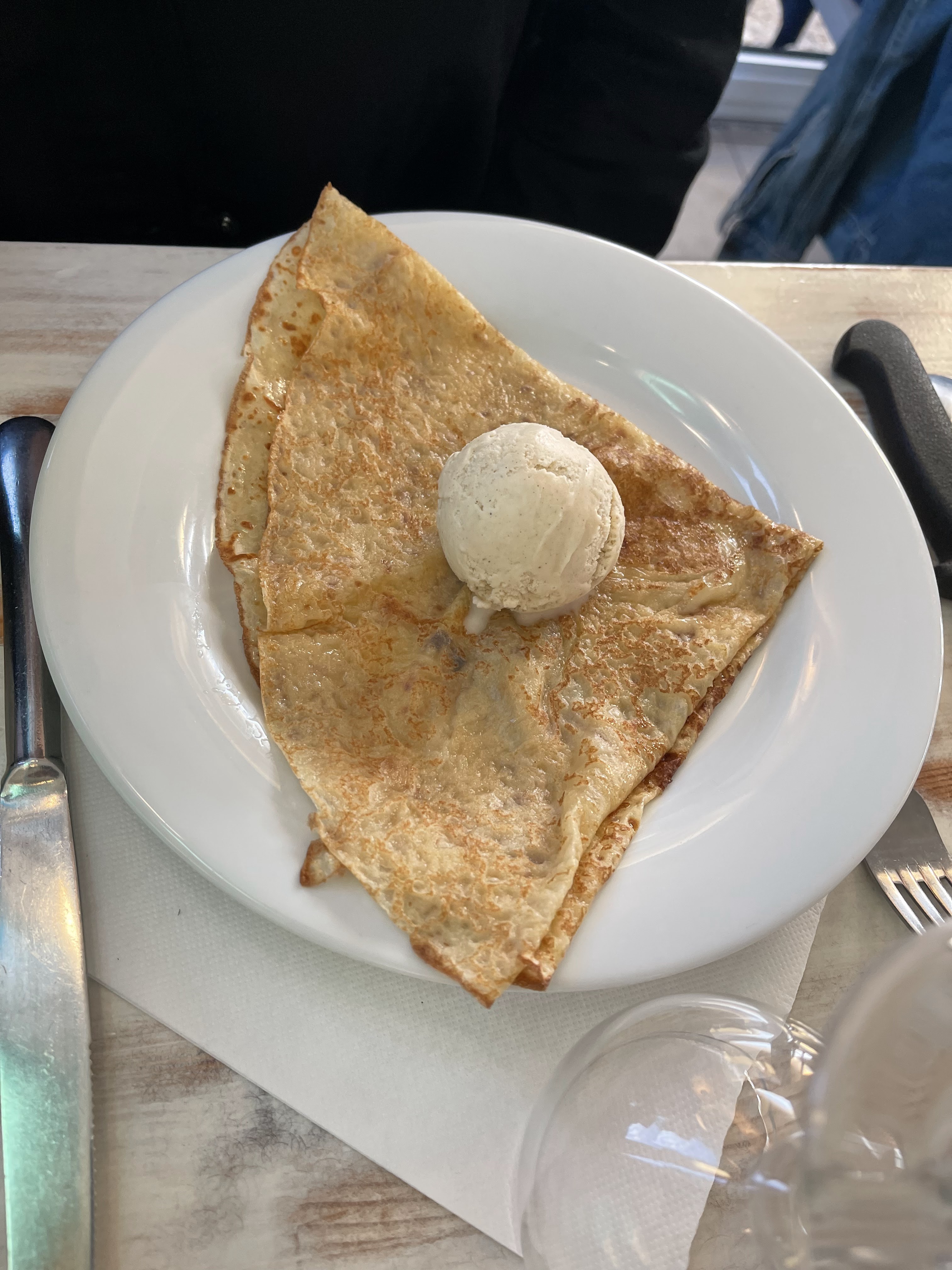 Un perit resto chaleureux, sur la falaise, donc face à l’océan. Des patrons et de jeunes serveurs souriants et sympas, des moules délicieuses, et des desserts faits maison. J’ai pris une compoté d’abricots et je ńai pas regretté mon choix.