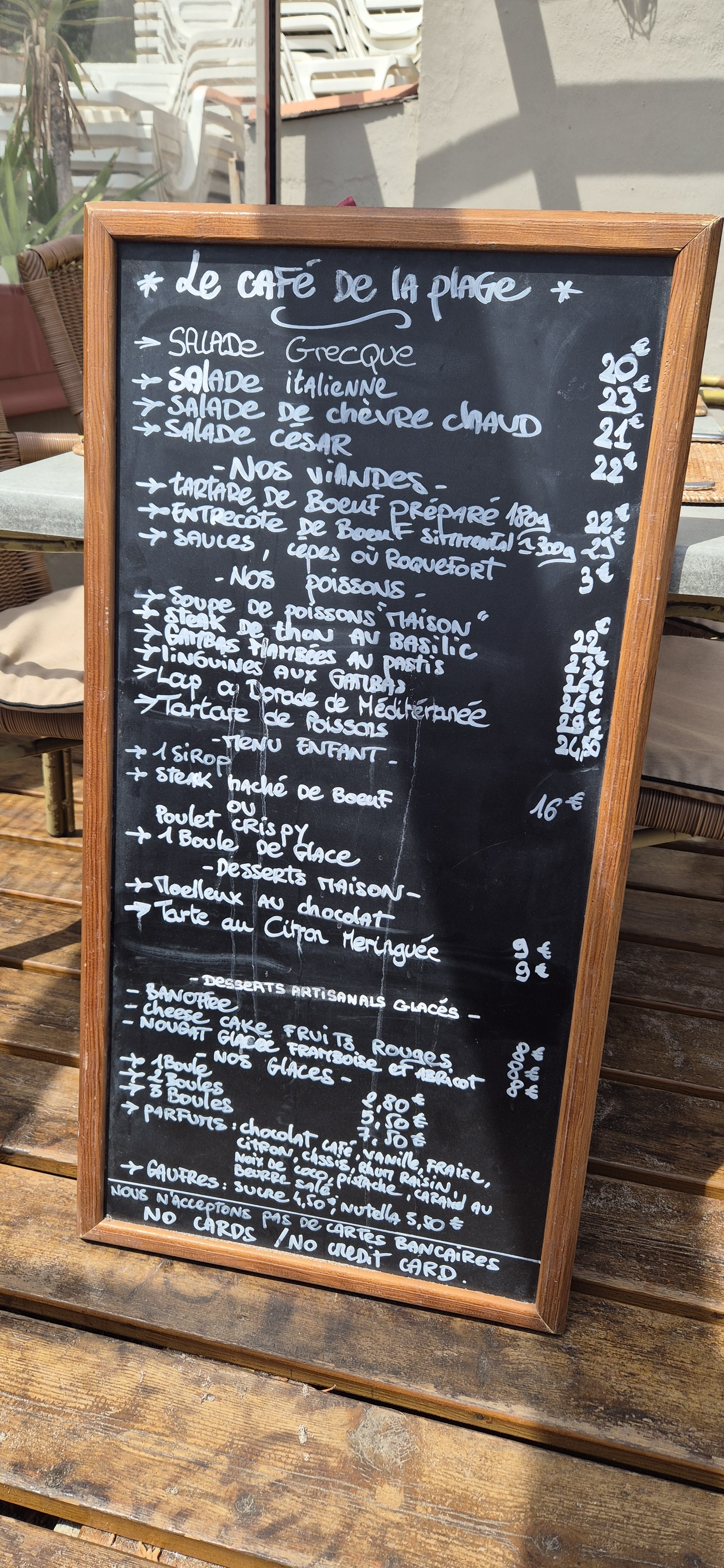 Allez voir la carte du Prado plage à Giens..... La c'est de la restauration... Ici Tagliattelle(Qui ne sont pas des Tagliattelle) encre de seiche .... Sèches..garniture inexistante.... Tarte au citron.....présentation....j aurai du faire une photo 📷... Bref trop cher...pour le cadre...... Et tout en espèces.......ou chèque .......... Passez votre chemin.... La plage publique reste magnifique...
