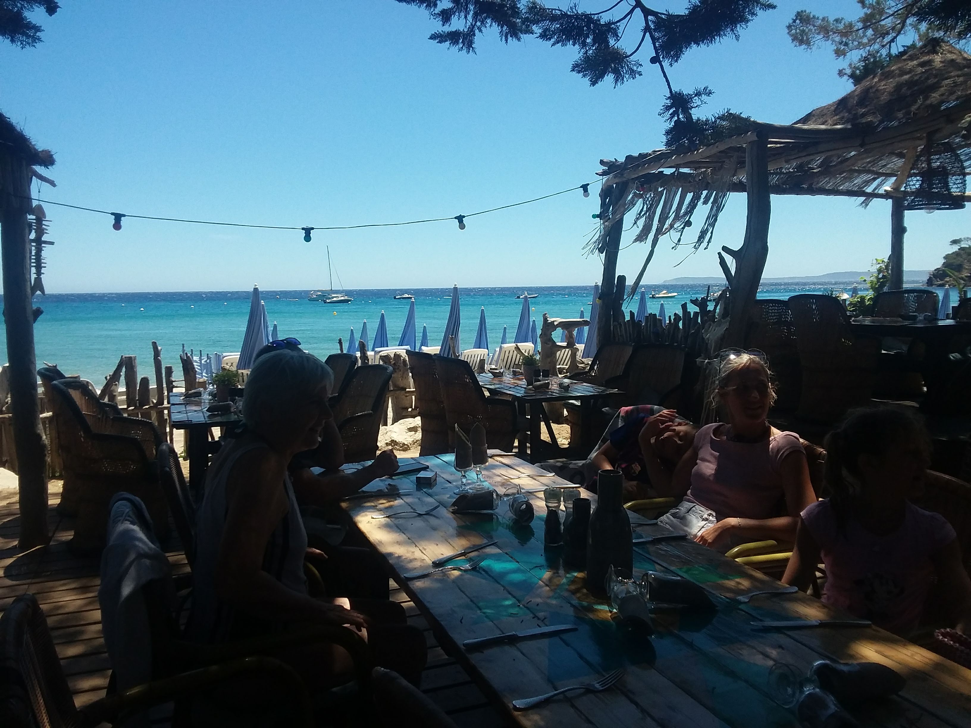 Spot fantastique sur la belle plage de Pramousquier pour le déjeuner, les serveurs très sympas et souriants. Par contre, pas de CB (lol), la patronne antipathique, le patron assis au milieu des clients sans décrocher un sourire, c’est presque caricatural… on nous demande de ramener nos verres vides avec un plateau, une première pour une plage privée… et pour l’assiette, passez votre chemin.