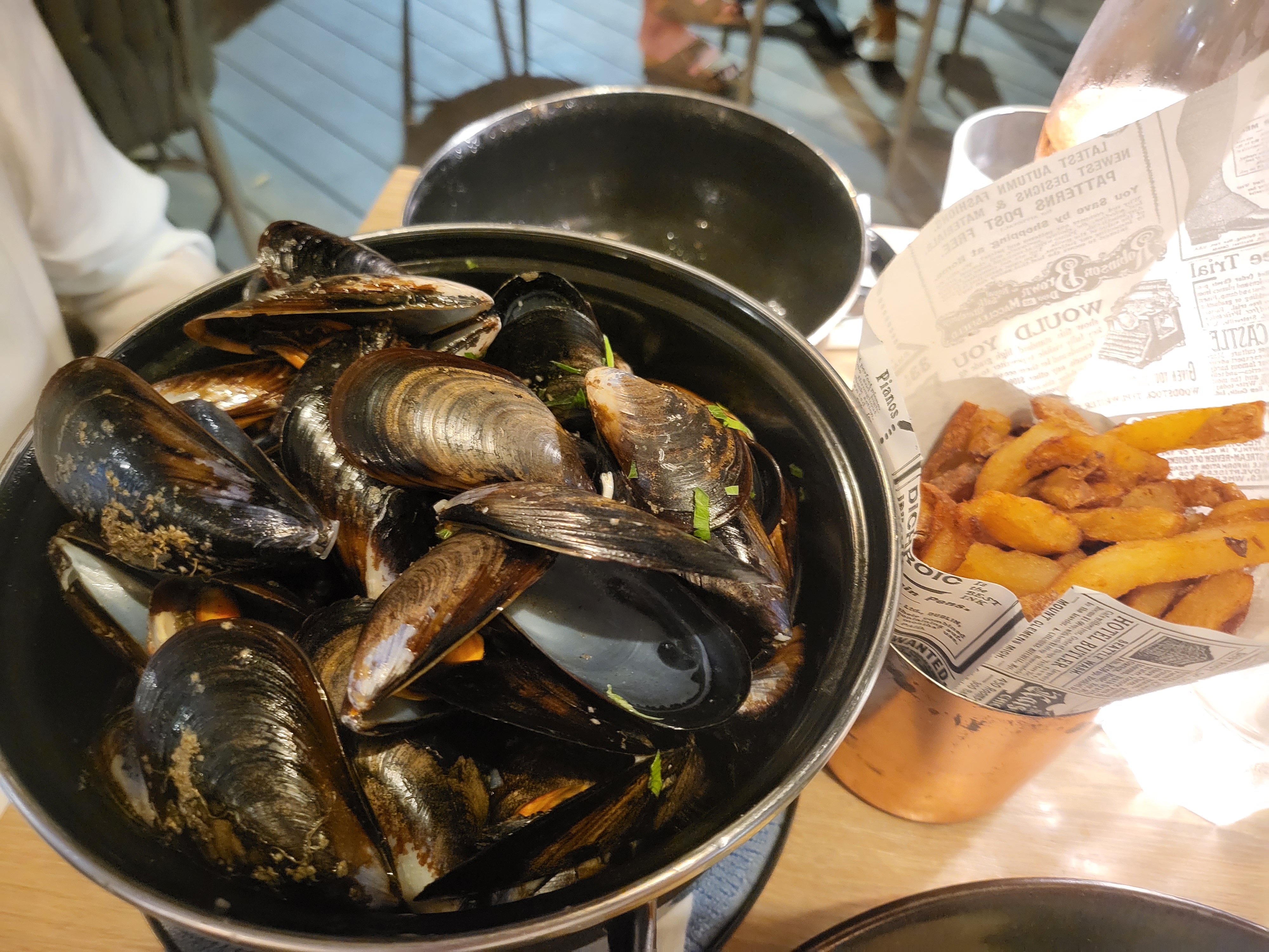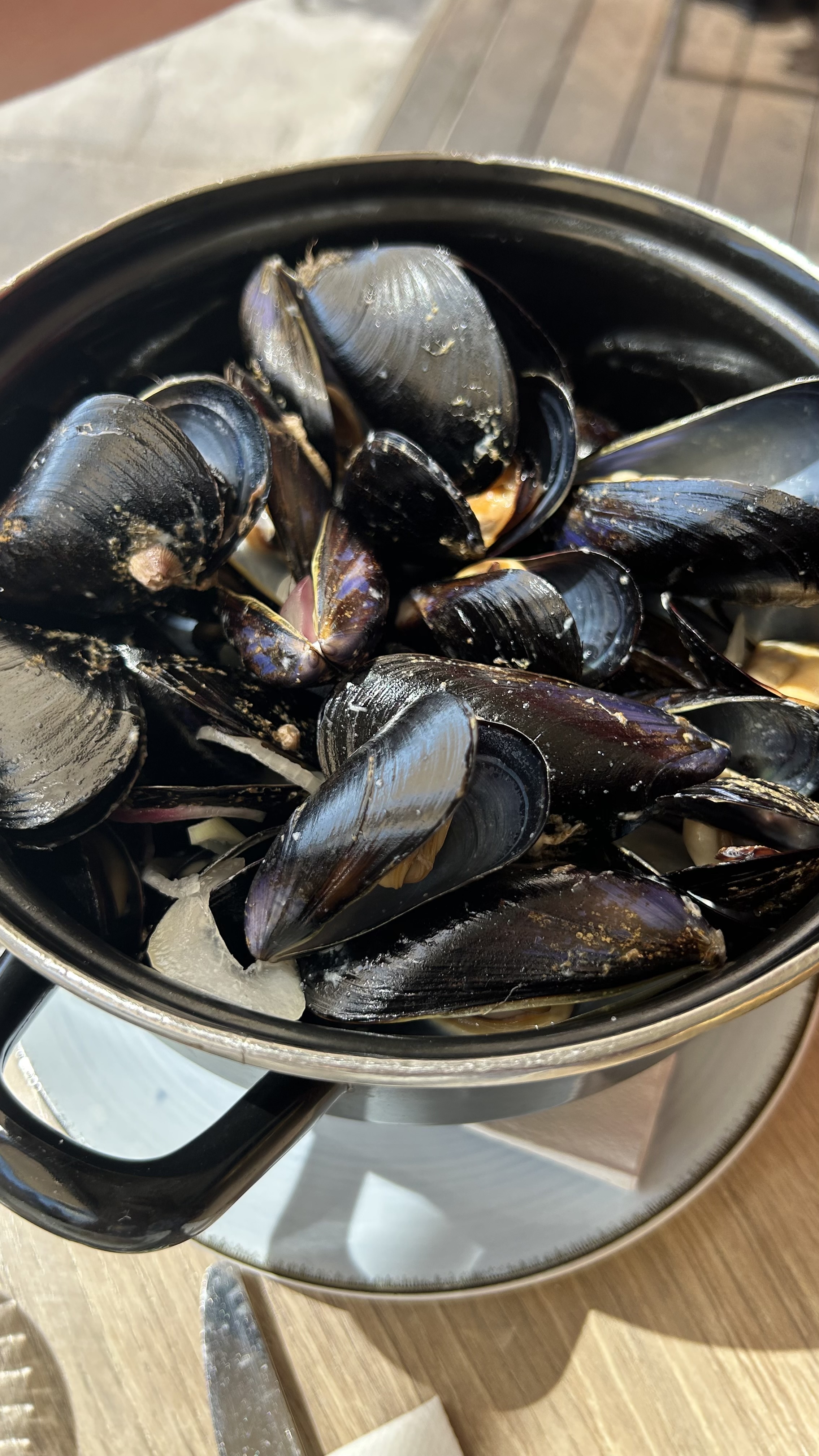 Tout d'abord la vue est très belle et bien placé. 🌊 Ensuite, table de 15 couverts, le début du repas s'est très bien passé mais vite l'attente a été très longue, réclamant plusieurs fois la carte des desserts pour au final devoir aller la demander à la patronne. Finalement, voyant que les tables de 2 personnes les intéressent visiblement plus et n'ayant personne pour prendre les commandes de desserts nous avons abandonné après avoir attendu bien 30 minutes de pouvoir commander des desserts. 😒 Alors peut être qu'ils sont débordés mais ils ont perdu 15 desserts et nous notre patience, les glaciers de la rue d'à côté en ont profité. 🍦 Sinon les plats étaient très bien, tant les moules que les poissons ou burgers. Donc mitigé, rarement autant déçus d'aussi peu d'intérêt nous étant porté mais bon restaurant. Bonus du jour, l'humour très moyen du serveur, surtout quand la table entière s'impatiente : c'est moi le dessert lancé à ma nièce 🤦 Une meilleure attention et un service qui ne traine pas excessivement et la note aurait été toute autre 🤷