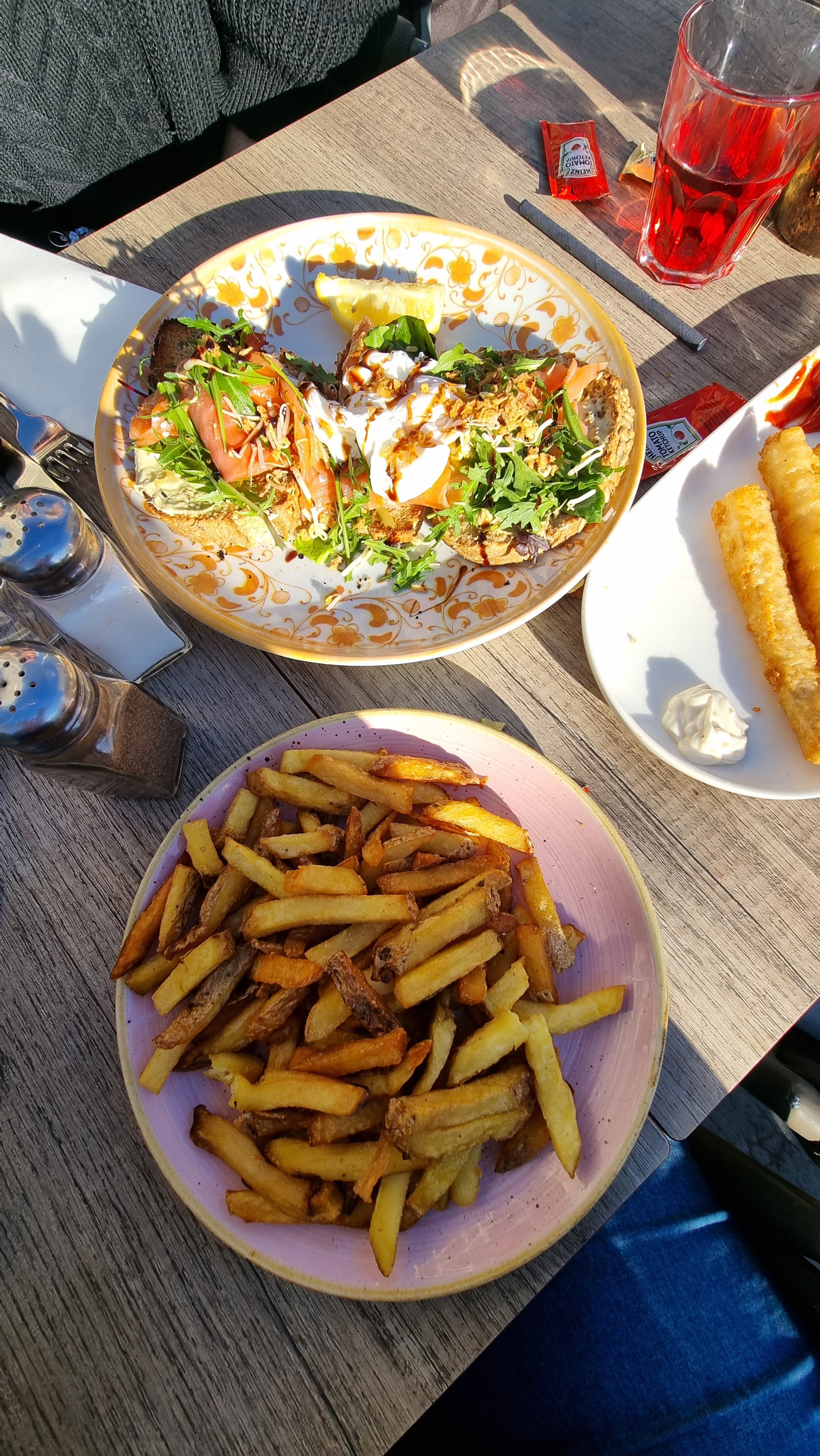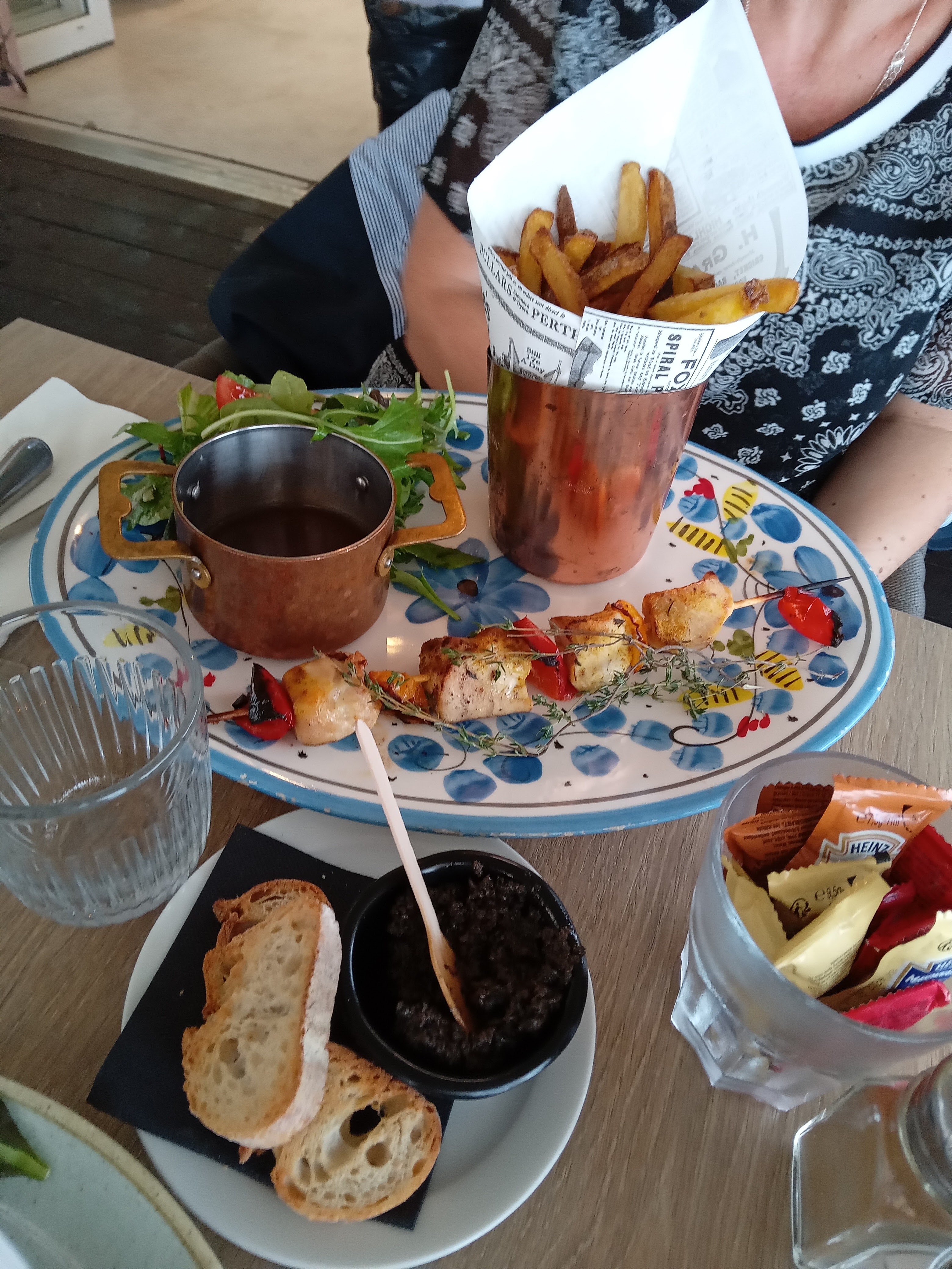Ambiance et vue agréables -service OK, cuisine très bof: pizza pas très bonne et wok pas super non plus (pas de produits frais)