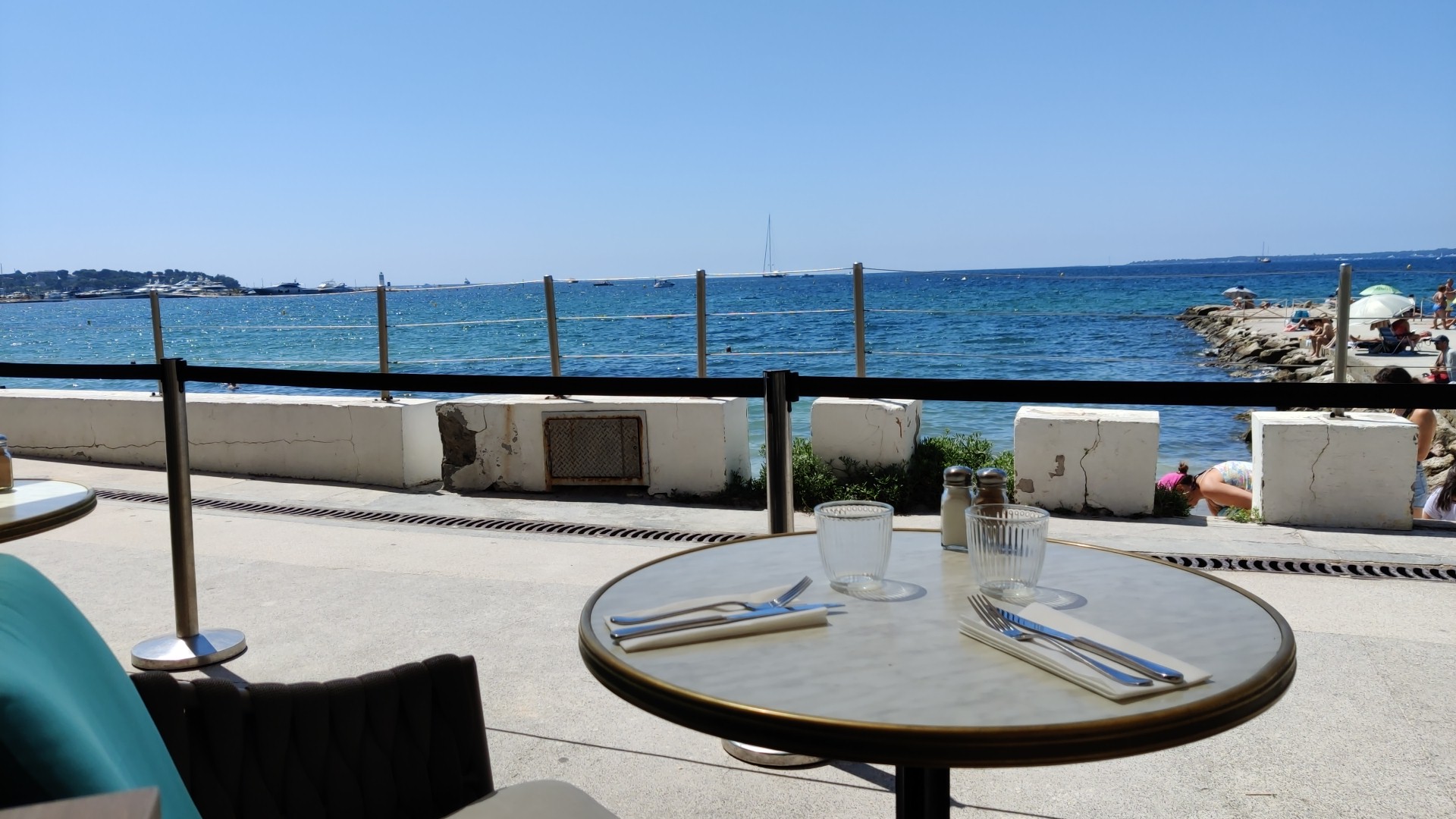 Accueil souriant, chaleureux and very helpful! La vue est extraordinaire, on est toujours bien accueilli, ce qui, à Juan-les-Pins, est presque une bonne surprise. Les prix sont dans la fourchette haute, mais corrects, si on considère la position en front de mer, face a la baie. (Sublime) Mention spéciale à Azzedine et Rebecca, qui nous ont chouchoutés jusqu’à notre départ. Un grand merci à toute l équipe !