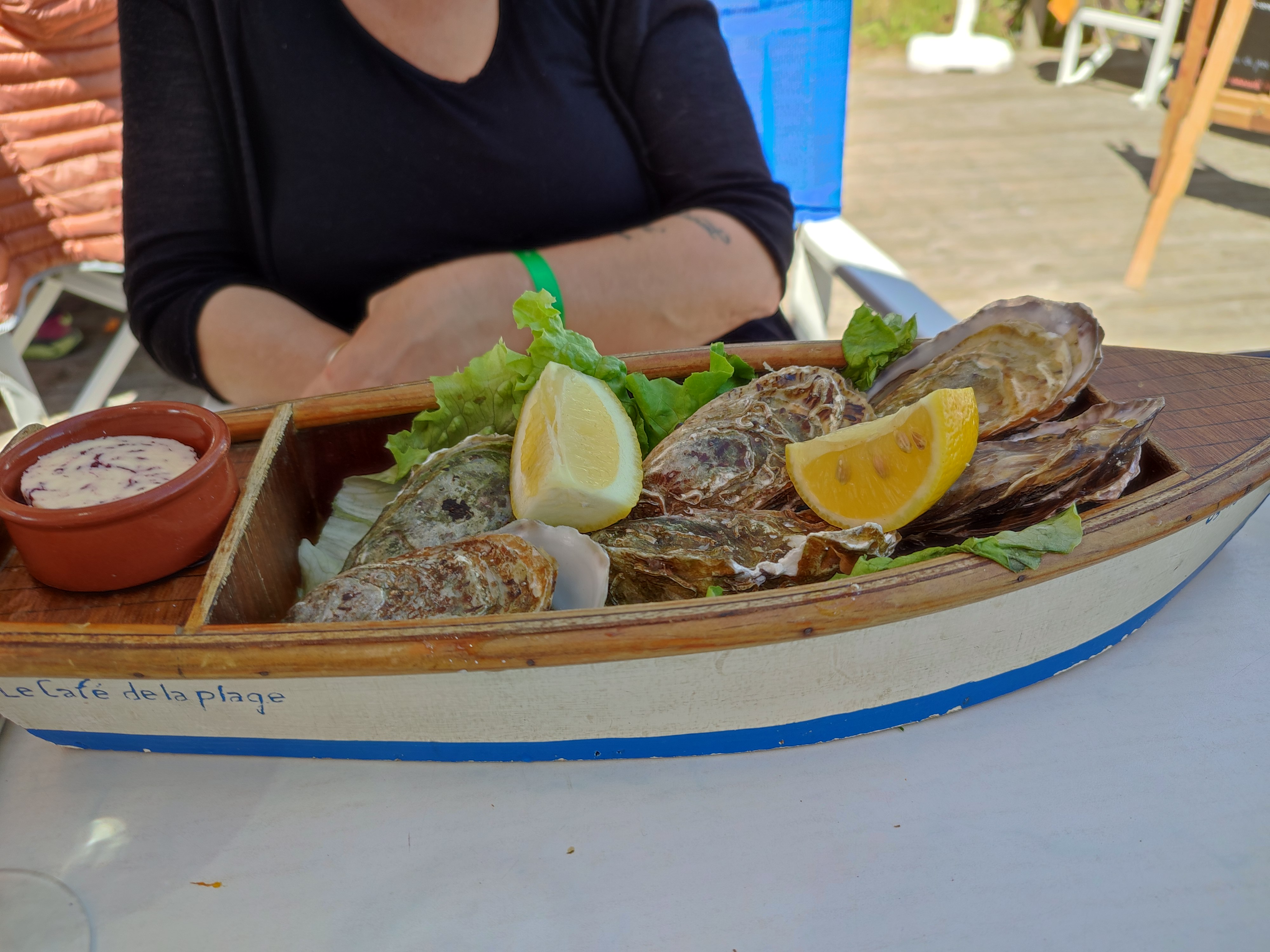 Si vous cherchez un restaurant sur l'île, venait au café de la plage de Boyardville. Terrasse magnifique avec vue sur la mer. Une dorade cuite au feu de bois magnifique est parfaitement cuisinée ainsi que des huîtres fraîches et succulentes. Bien sûr les desserts ne sont pas à dénigrer très généreux et très copieux. 😉 Une super expérience.