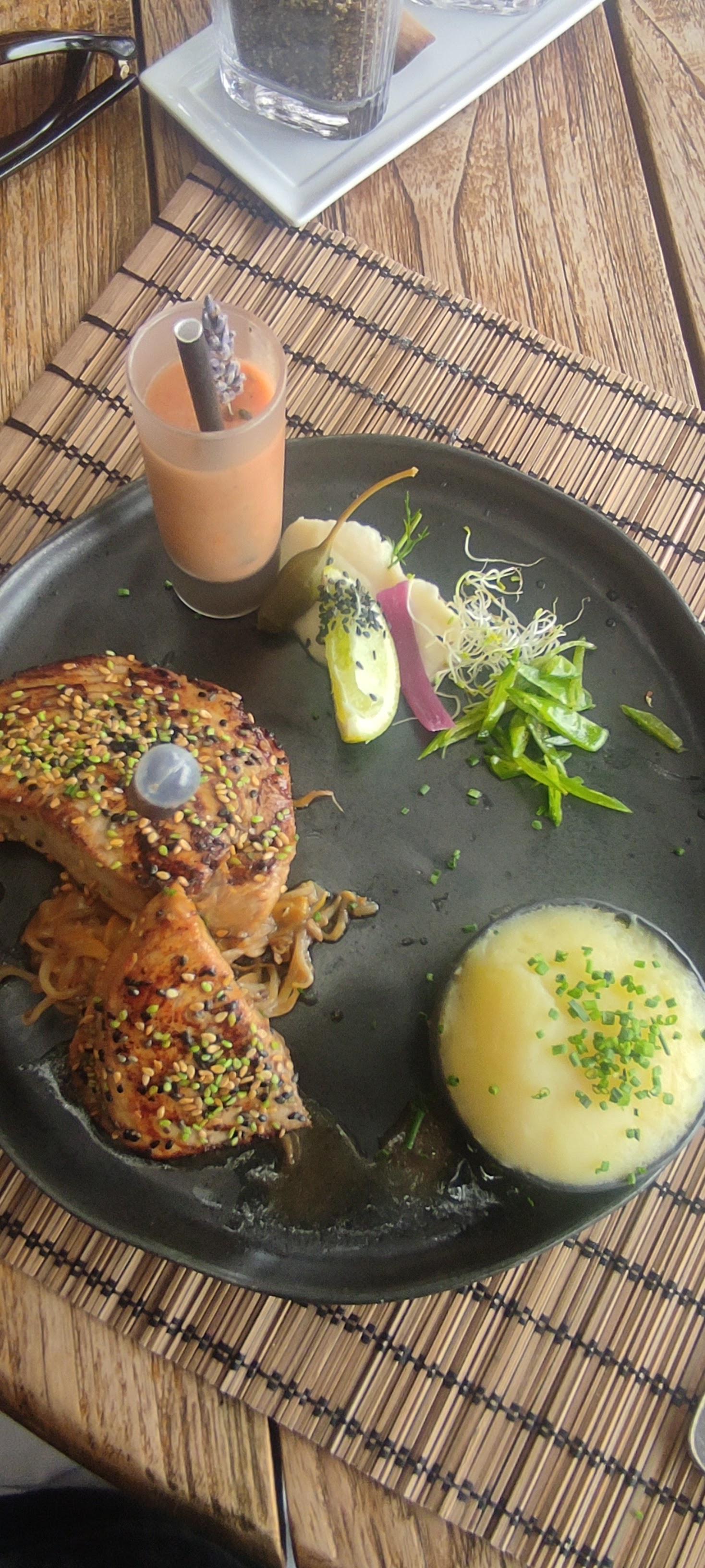 Superbe lieu, belle équipe professionnelle et agréable. Côté table, c’est de la cuisine haute en couleurs et qualité ;) peut-être un peu trop salé pour la note mais bravo