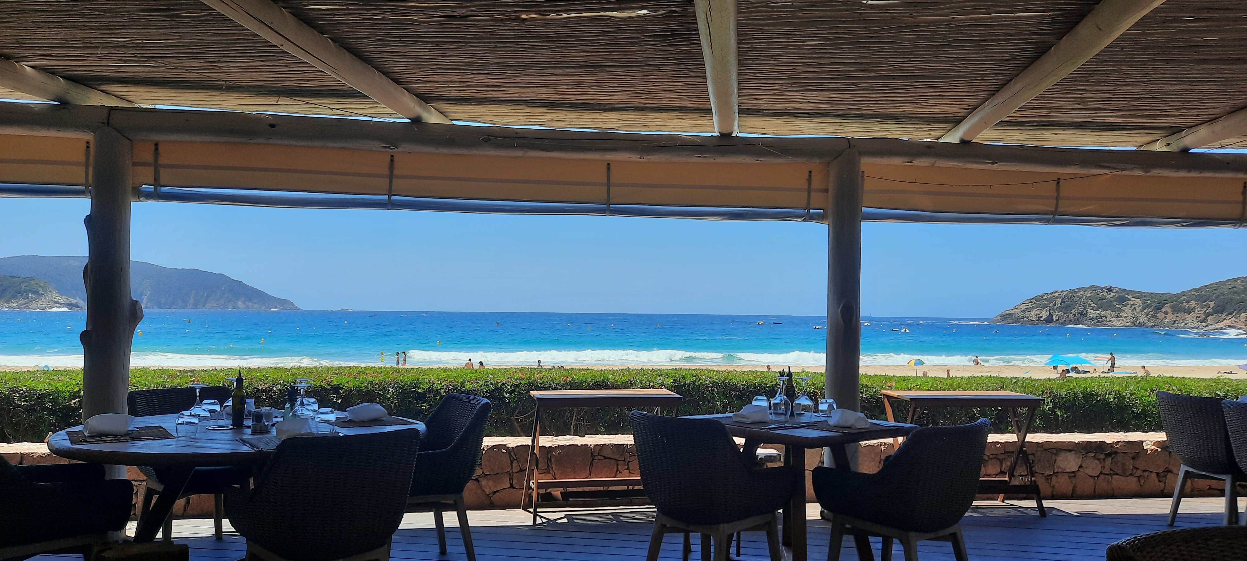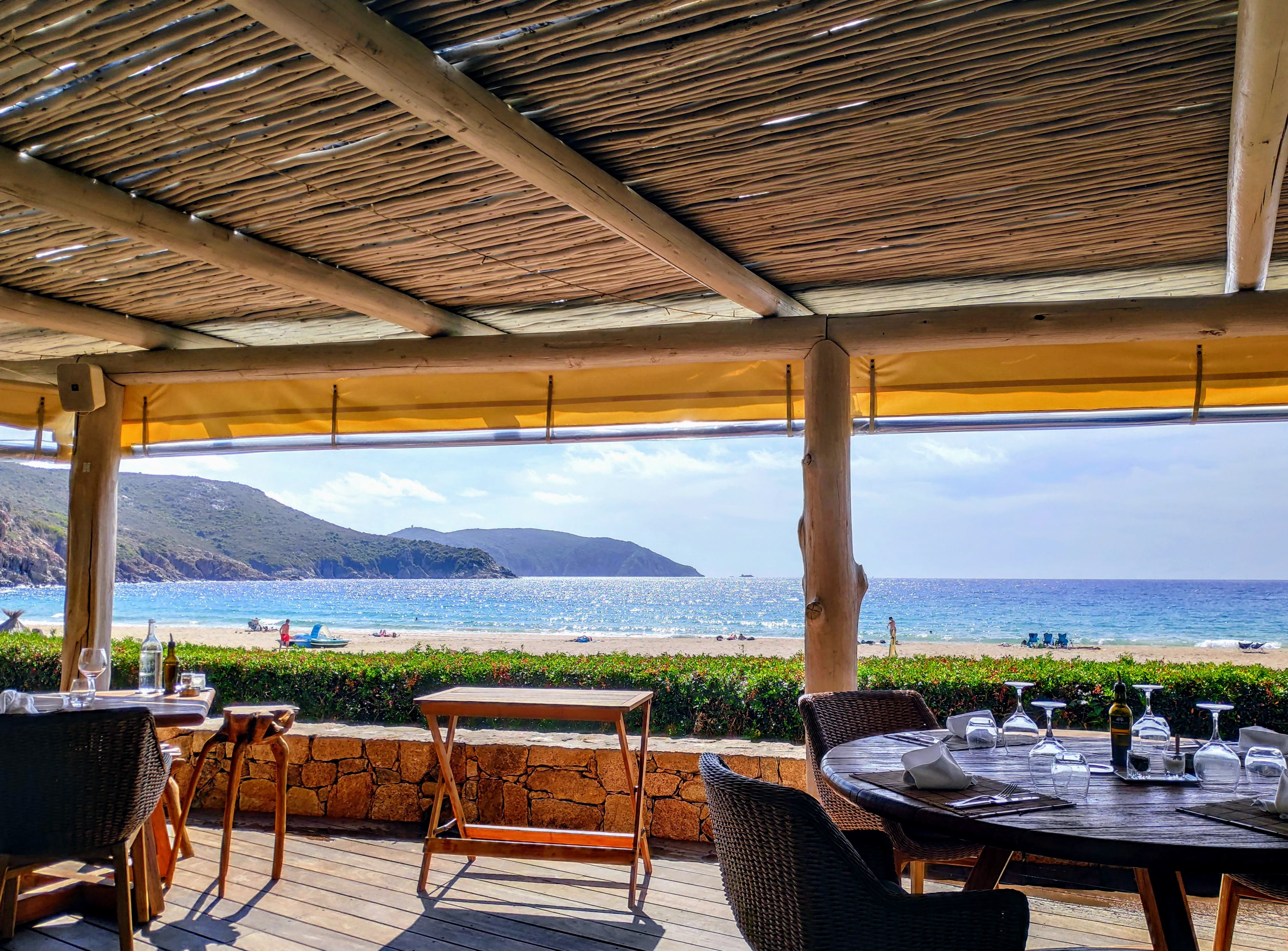 On y déjeune délicieusement avec une vue imprenable sur la plage d'Arone. Le service est attentionné mais cool. Le prix est à la mesure de la qualité.