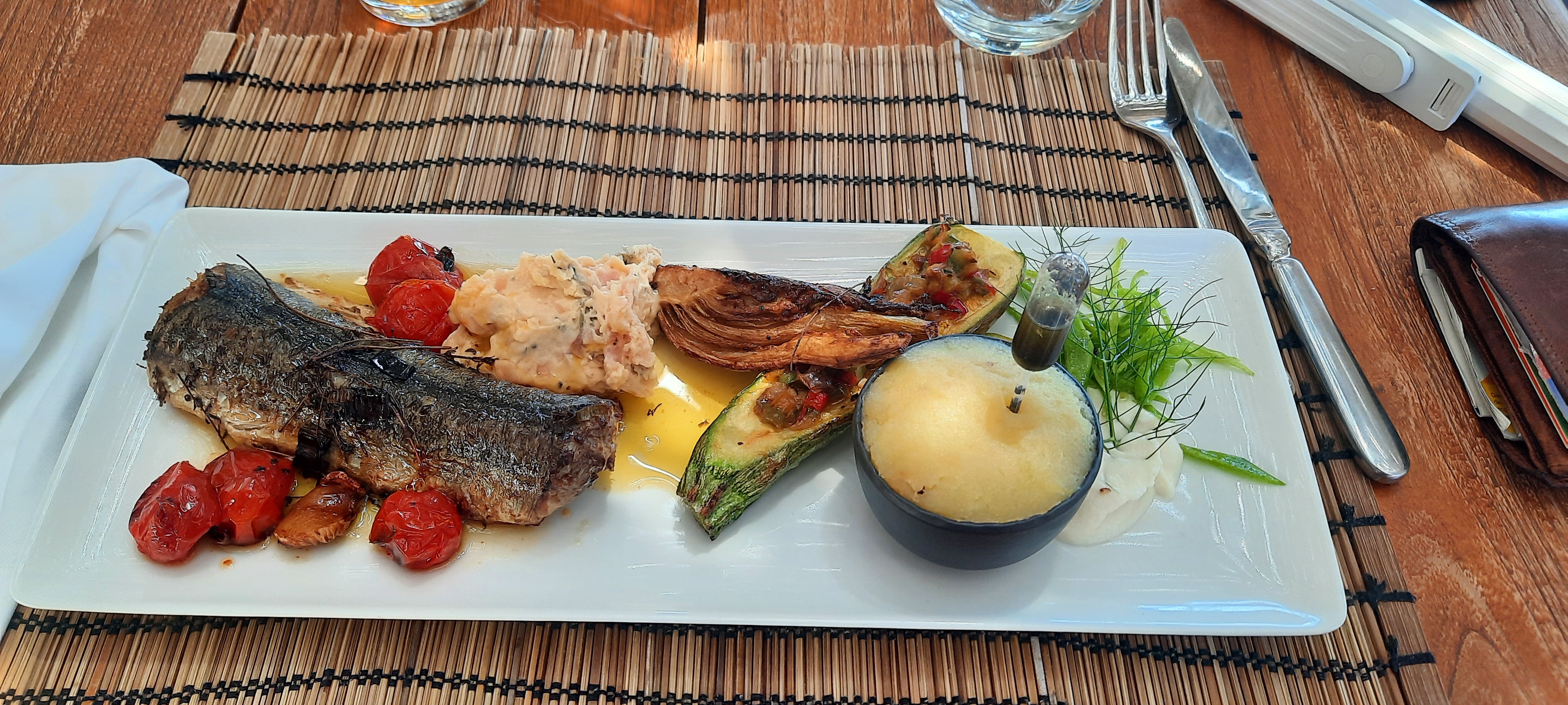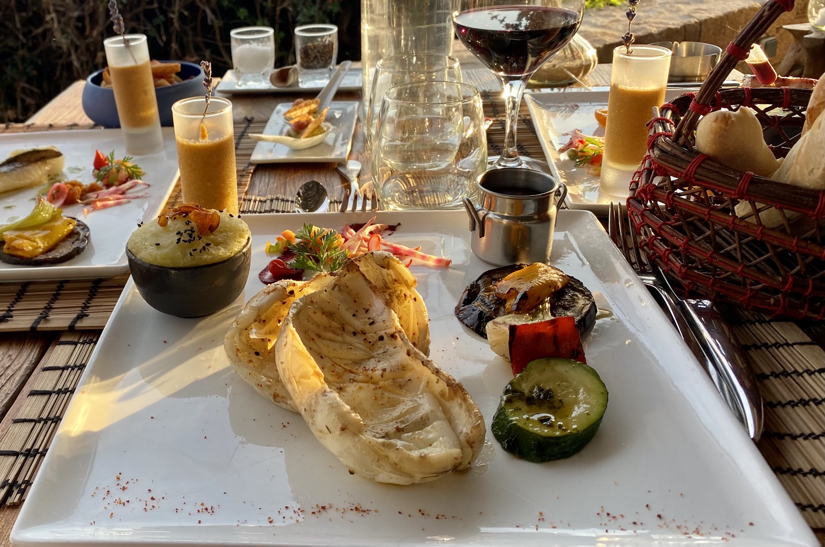 Le cadre est superbe. Nous avons pris plusieurs plats. Seul bémol pour le poisson du jour. Le découpage est fait devant le client mais le soir, dans le noir éclairé à la bougie alors mal fait, il restait beaucoup trop d'arêtes, impossible de finir l'assiette. Pour les autres plats, rien a dire, c'était très bon.