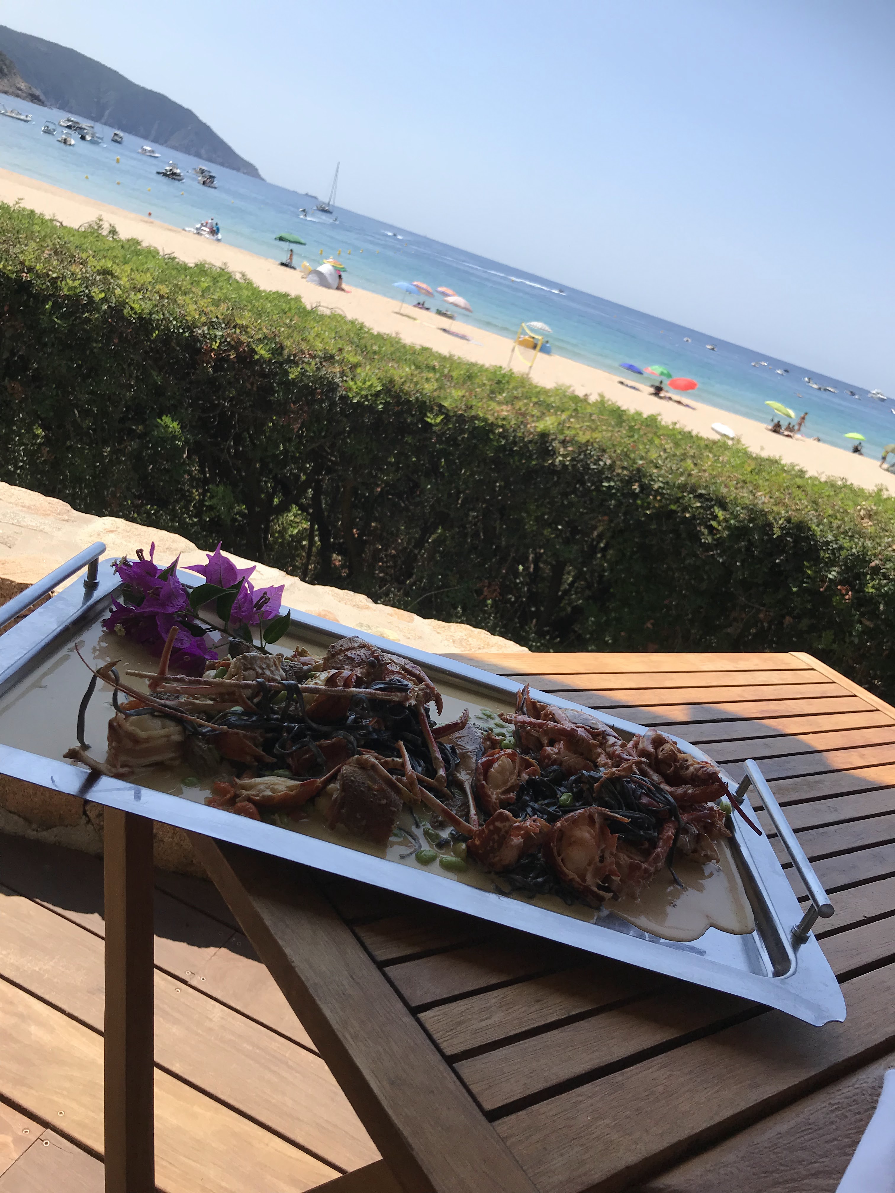 Cela fait une quinzaine d’années que nous venons, avec nos familles et nos amis, au Café de la Plage. C’est à chaque fois un moment particulier, chaleureux, animé, où tout le monde est heureux d’être là. Accueilli au bateau avec sourire et amitié par William et sous la tonnelle par Jean-Daniel tout est bien : les plats, l’accueil encore une fois, l’équipe qui court alertement pour nous régaler, c’est un bonheur. Pour moi c’est toujours les chipirons mais dans les pâtes aux langoustes sont plutôt des langoustes aux pâtes tellement les bébêtes sont présentes. Je m’arrête et j’y reviendrai là-bas pour un moment génial et ici pour vous donner d’autres impressions.