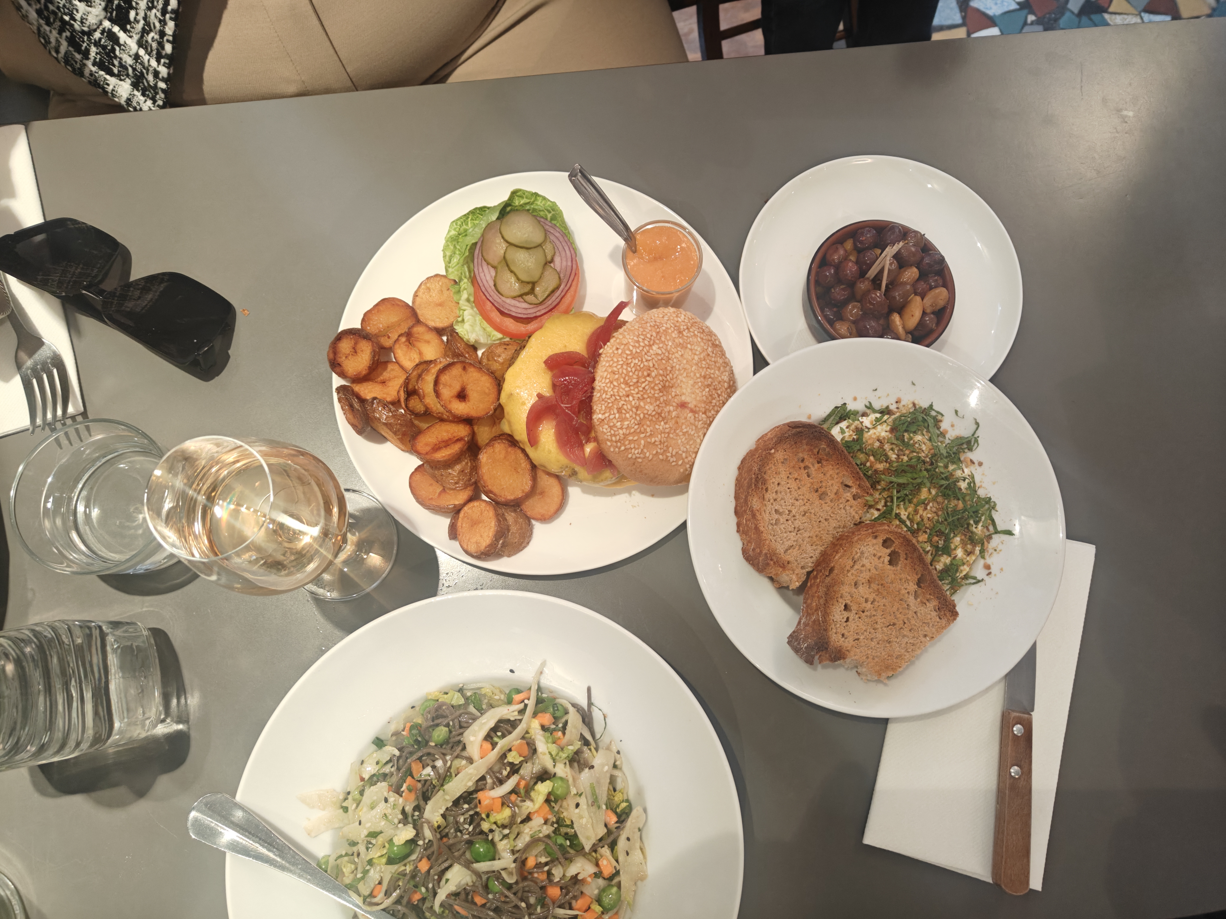 Nous avons lu des critiques sur ce café en ligne et y sommes allés, il est situé près de la tour Effiel, niché à l'intérieur, nous recherchions des options végétariennes et ils avaient de bonnes options. Nous n'avions pas de réservation mais le propriétaire nous a quand même hébergés, mais je recommande fortement de réserver une table à l'avance car elle se remplit rapidement. Nous avons commandé des nouilles Soba, un hamburger végétalien, des olives rôties, des noix et un plat de fromage, tous recommandés par le propriétaire et une nourriture délicieuse. Le propriétaire était très accueillant et le personnel était également très gentil 🙂, nous reviendrons certainement chaque fois que nous reviendrons à Paris.