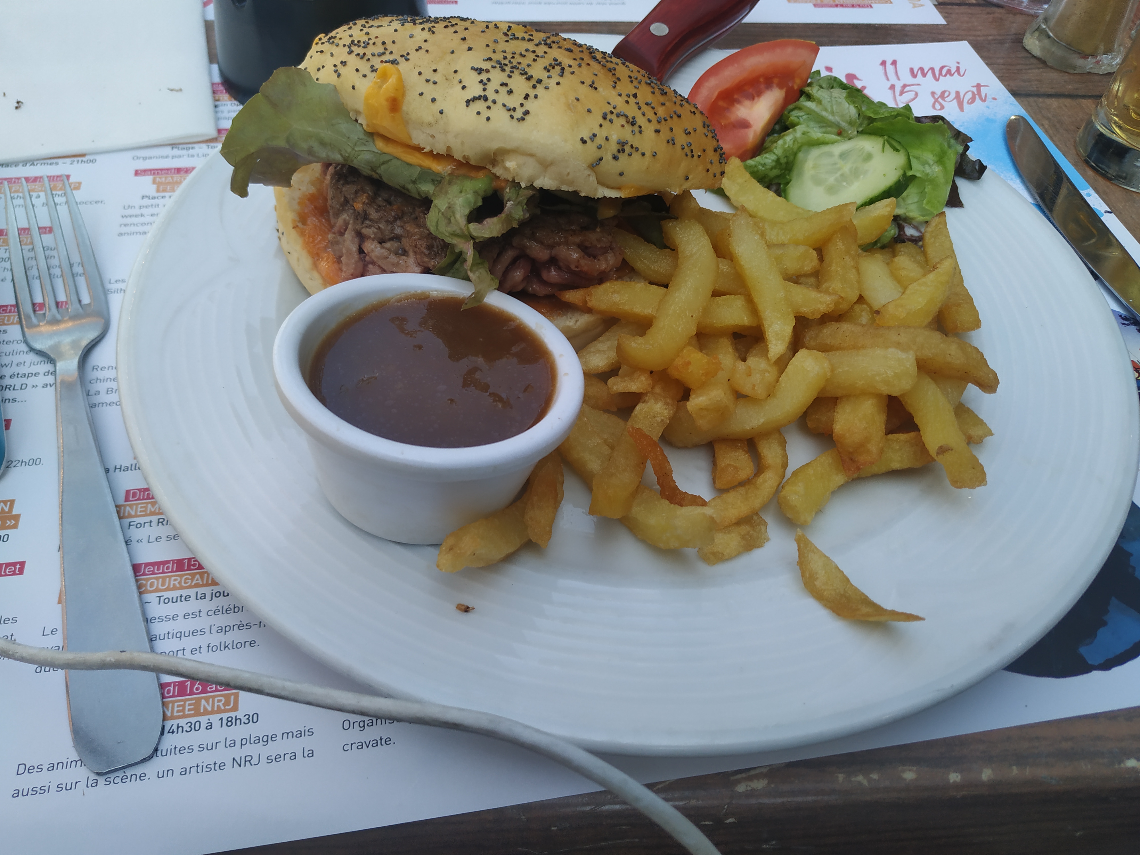 Je suis allé lors d une balade moto pour les sauveteurs en mer de Dunkerque donc beaucoup de monde et nous avons finis là et vraiment aucun regret nous avons pris le burger au fromage de wissant ,pour moi l un des meilleurs burger que j ai mangé en plus juste en face des cuistots super marrant et au top 👍👍👍 pour le prix je ne sais plus ? Mais pas exessif vu la qualité. Miam miam