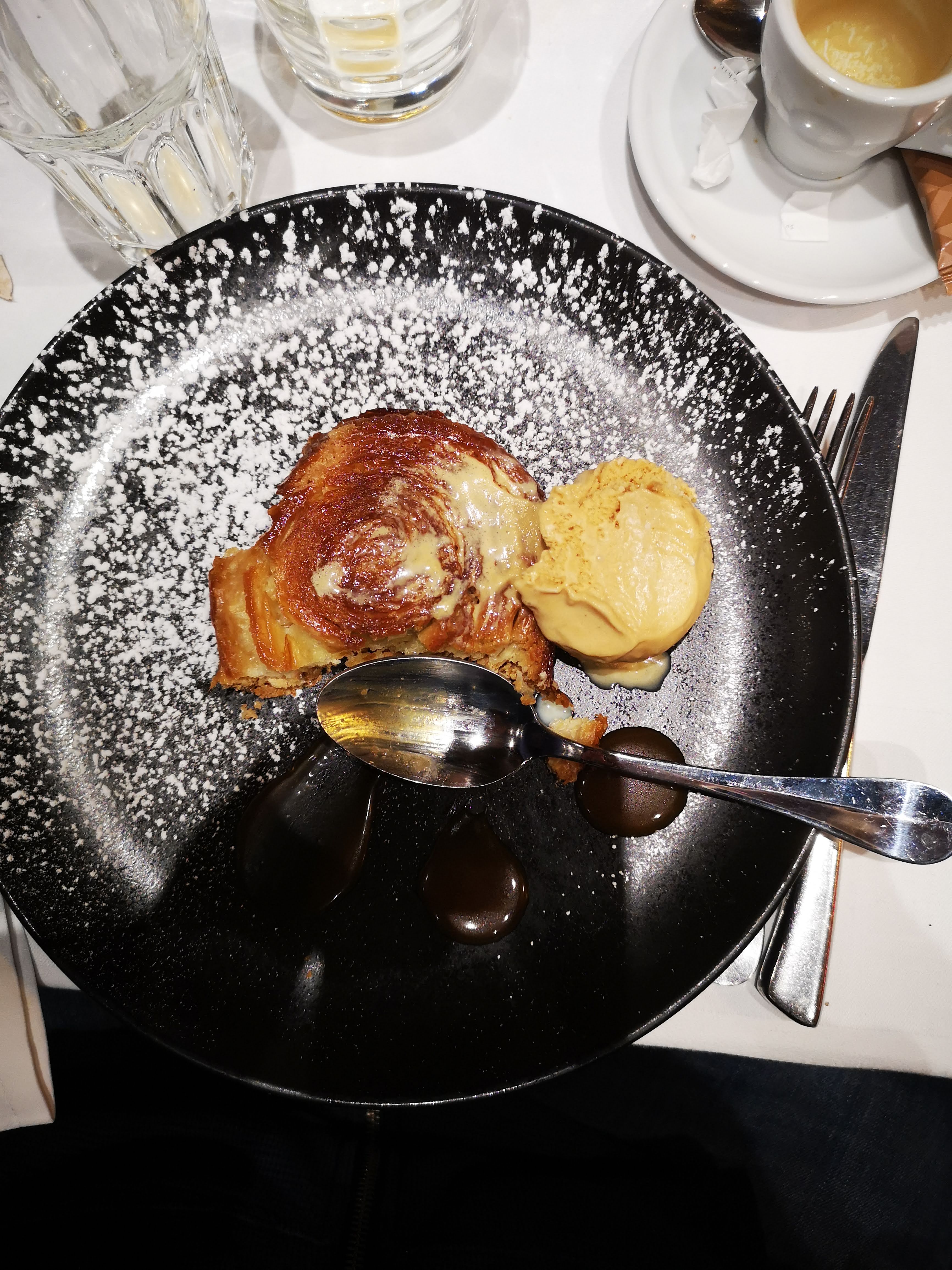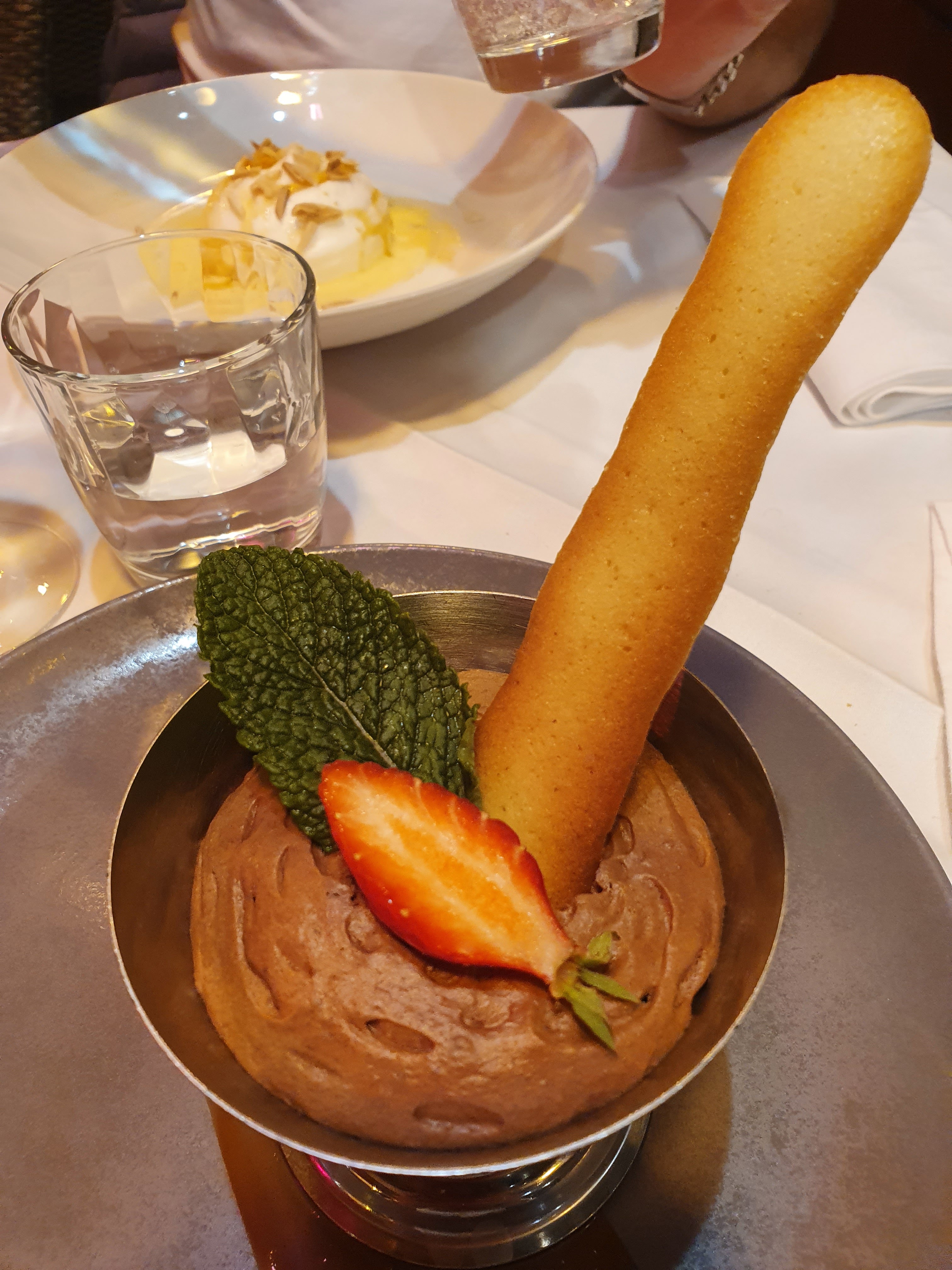 Nous sommes rentrés sans avoir consulté les avis contrairement à mon habitude. Une fois assise, je regarde les avis et la frayeur…. Le repas était parfait et savoureux. Aile de raie et saumon rôti à déguster sans hésitation ! Desserts également ! Il est vrai que l’ambiance est peu froide mais la serveuse se prénommant Lucie était parfaite.