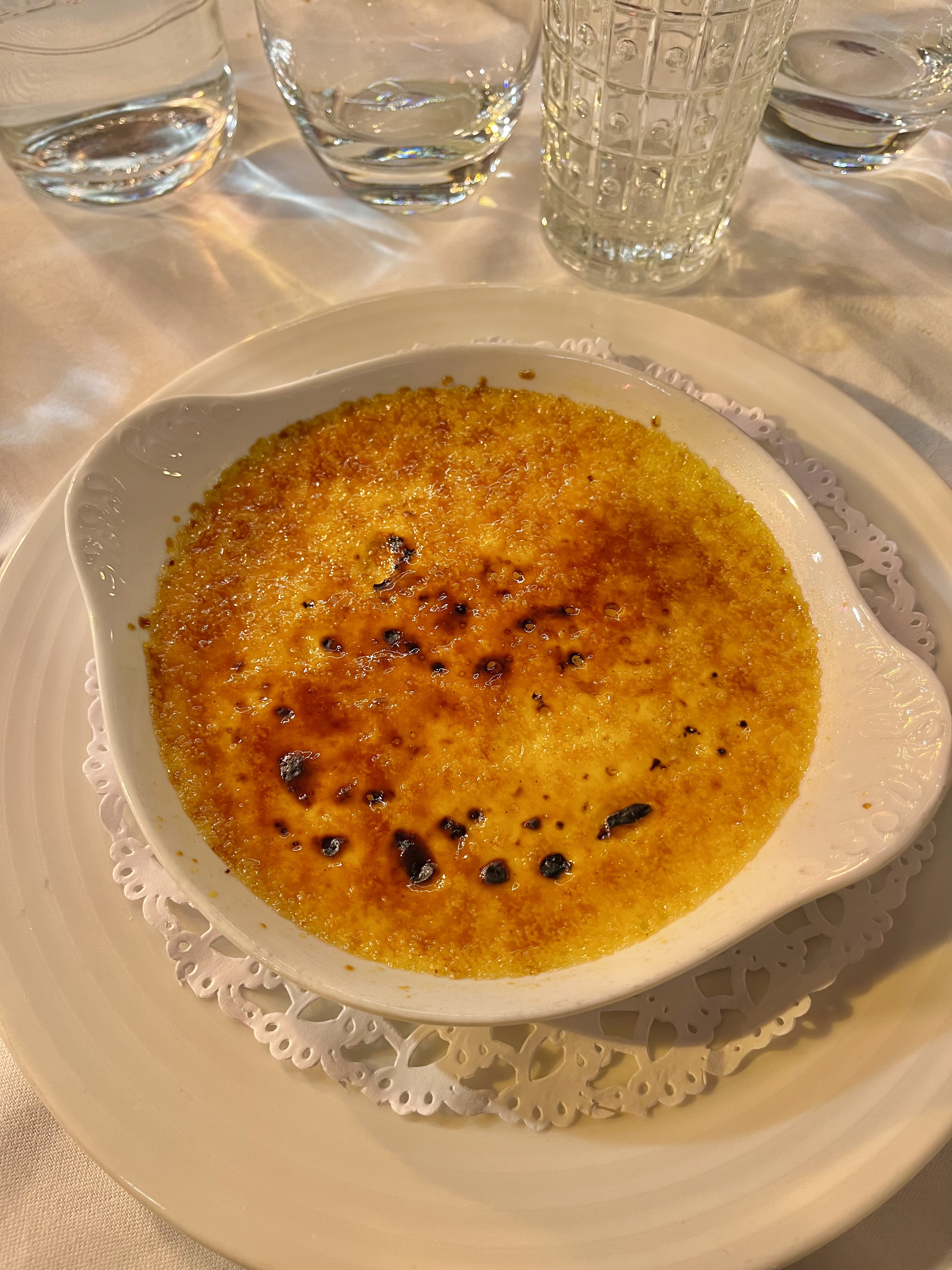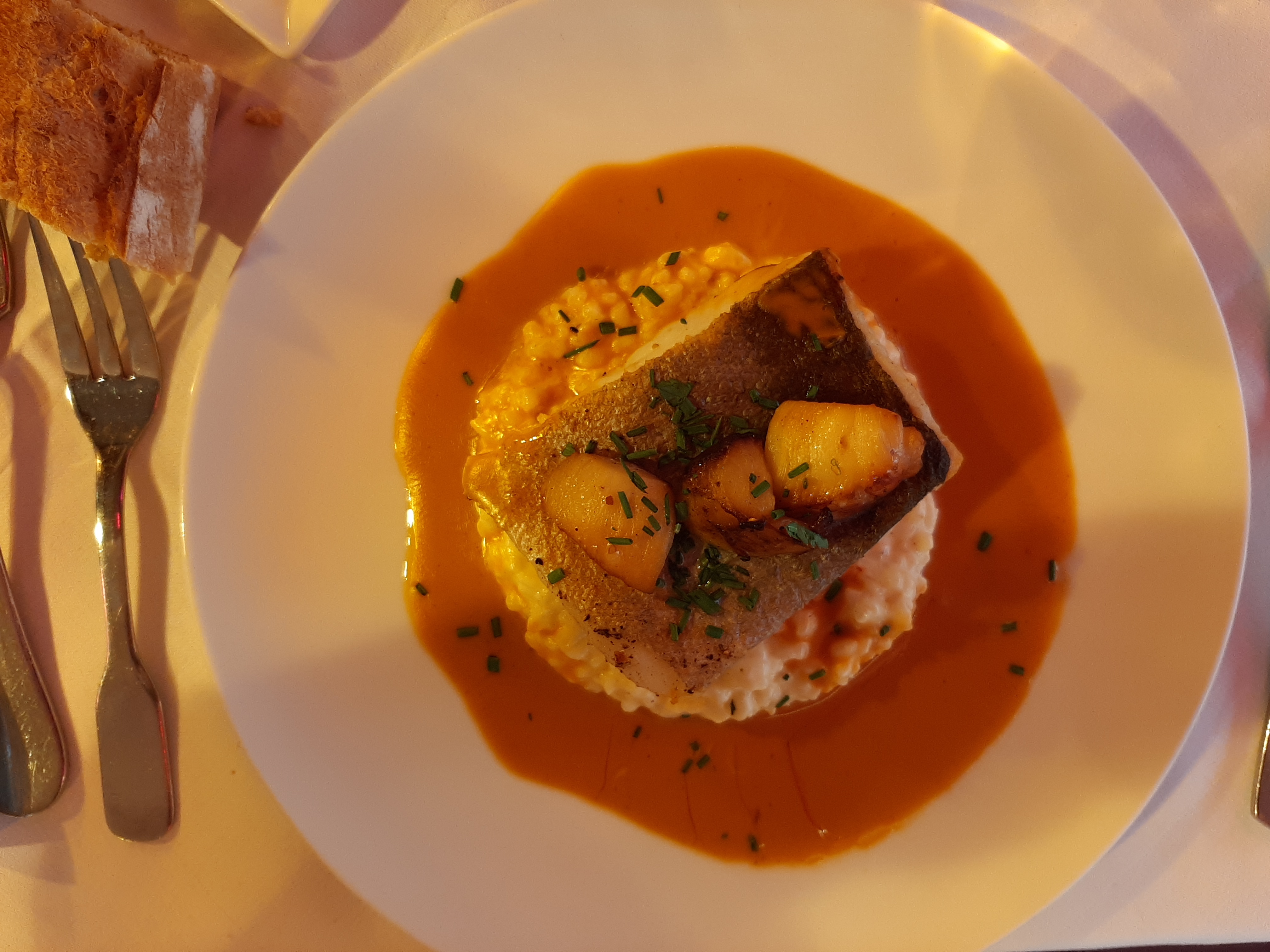 Excellent restaurant nous n’avons jamais été déçues dernièrement brochettes de coquilles st Jacques et risotto champignons et sublimes crêpes Suzette