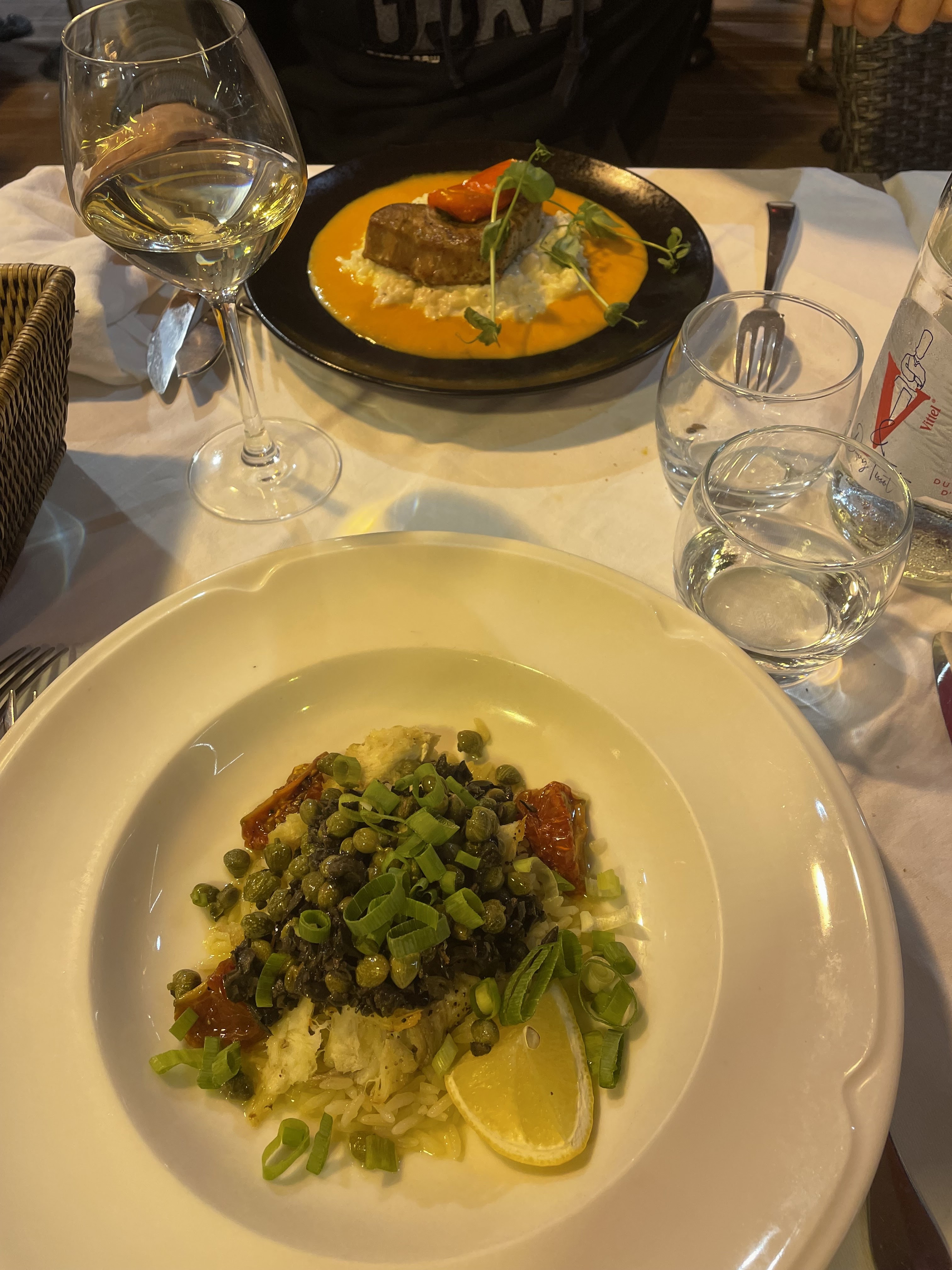 Délicieux, bonne portion, poissons cuits parfaitement 🥰 Enceinte avec de nombreuses allergies il n’est pas évident de toujours savoir quoi manger. Heureusement le manager était là et à pu répondre à toutes mes questions. N’hésitez pas à le demander! Je reviendrai avec plaisir (et sans être enceinte pour les plateaux de fruits de mer qui ont l’air délicieux 🤤), mon mari a pu en profiter ☺️