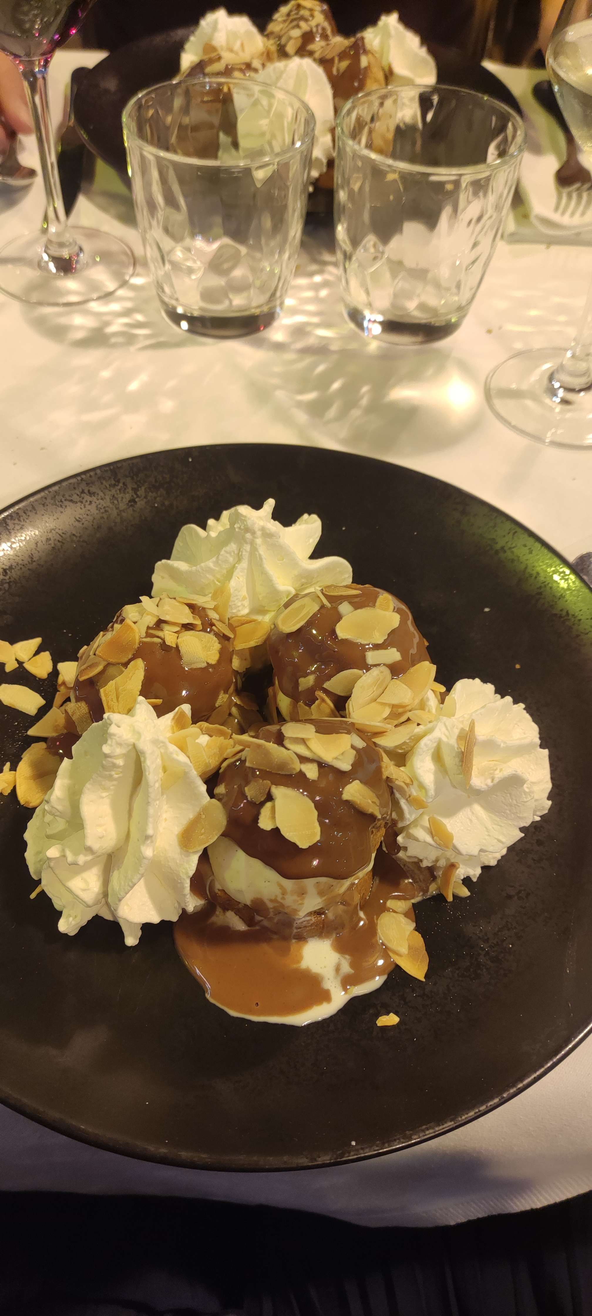Excellent. Très bon accueil, même pour notre gros chien qui a eu droit à sa gamelle d'eau. Terrasse agréable, belle carte, menus intéressants, juste l'agneau pas assez salé ou relevé. Attention, les profiteroles sont copieux !!