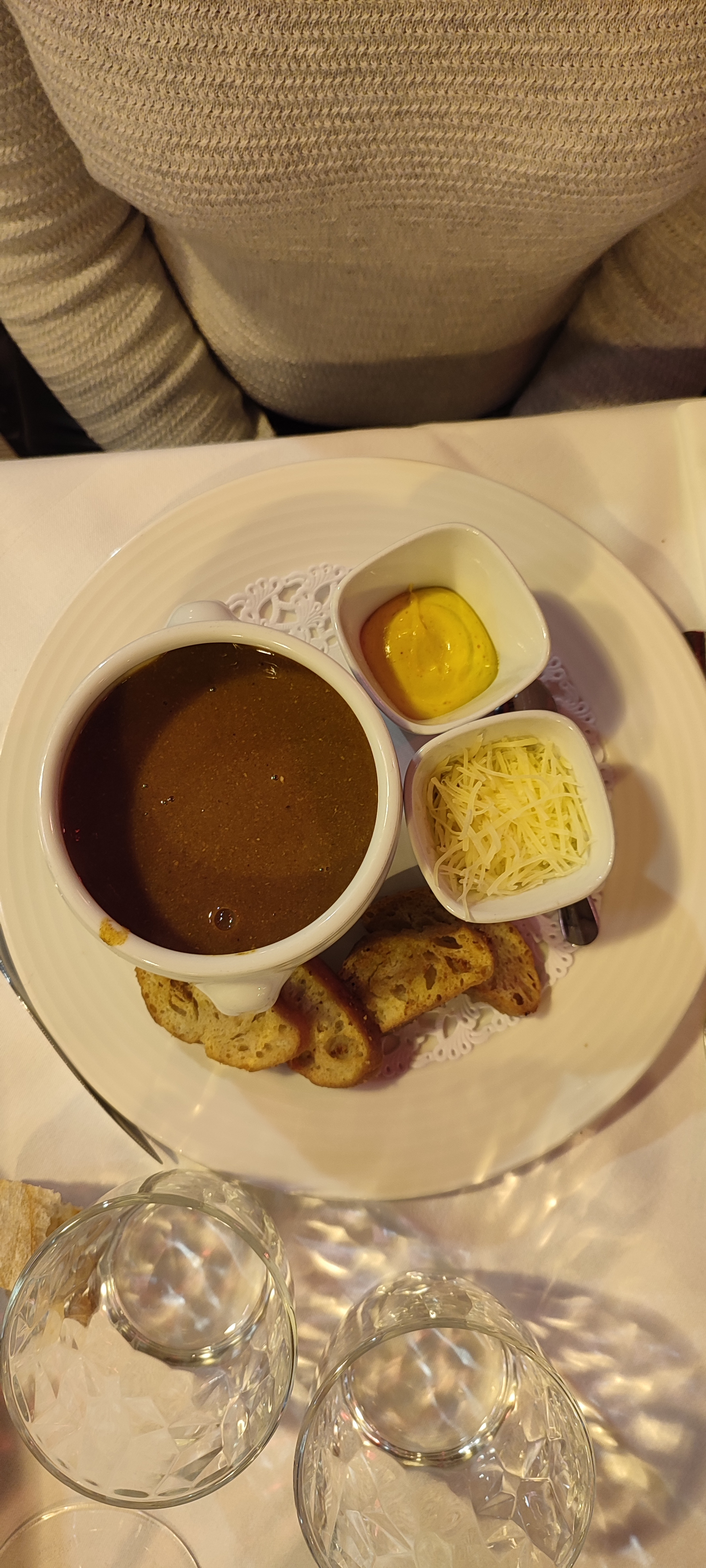 Pour mon repas soupe de poissons puis pré salé. Très bon repas. Personnel très professionnel. Je conseil ce restaurant