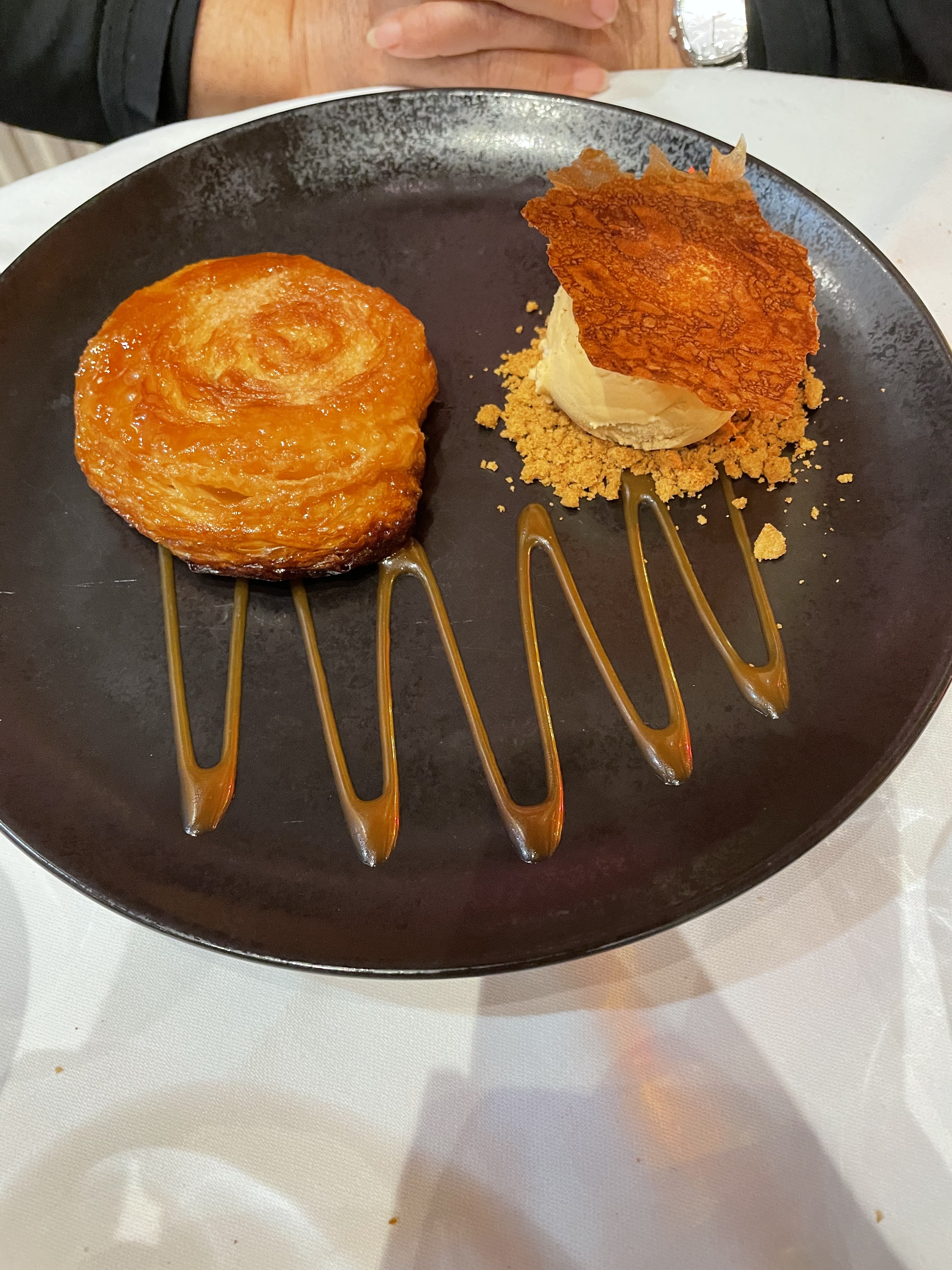 Huîtres très fraîches. Menu abordable et délicieux couronné par un excellent kouing aman accompagné d'une boule de glace caramel beurre salé.