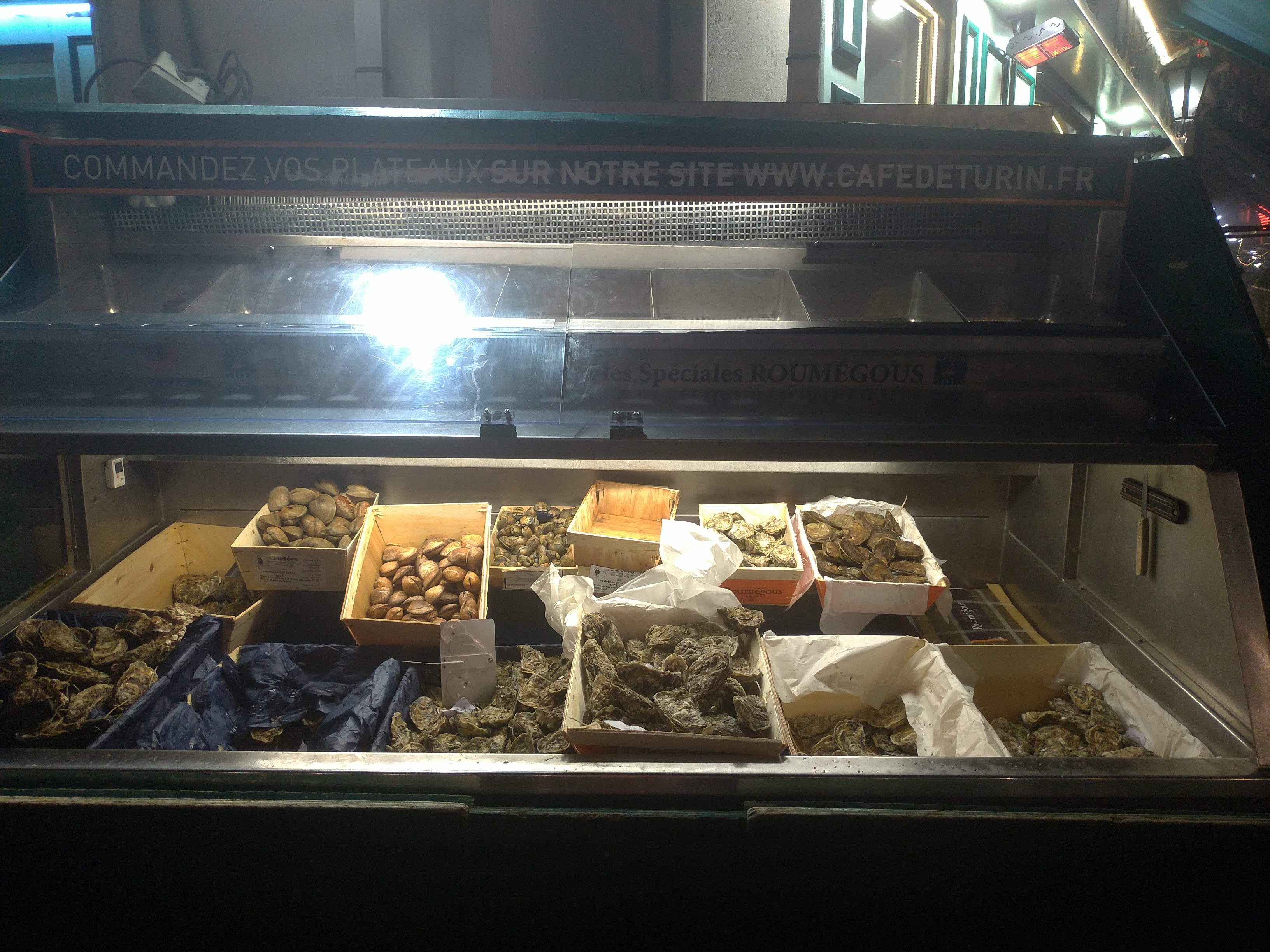 J'adore les huitres n1 roumegou que je ne trouve qu'au café de Turin. Par contre déçu par les moules marinières qui étaient moyennes.