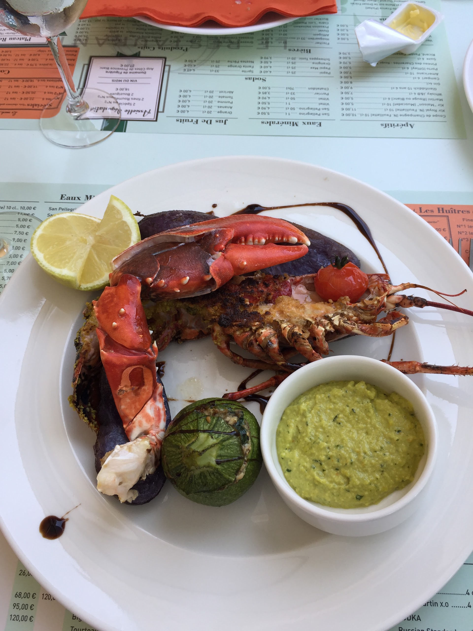 Ambiance mmmmh … mais la soupe de homard c’était de l’eau saveur homard….vraiment déçu, voir plus 😞 Merci la rouille et l’ail mais c’est tout ! Quant au tarama d’oursin c’est un pot commercialisé (pas maison) mais cela dit c’est bon ouf..👍