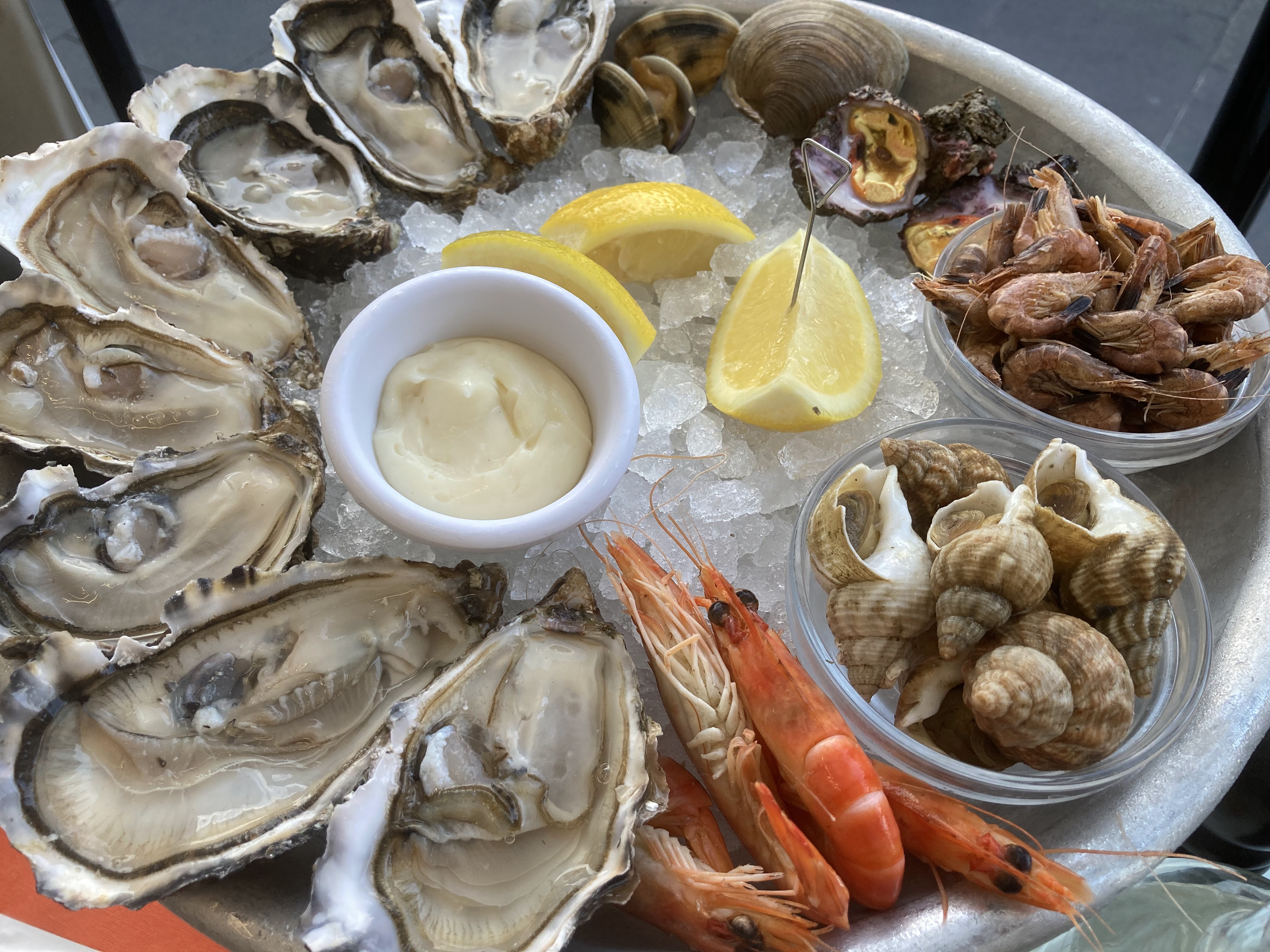 Très bon plateau de fruits de mer frais et appétissant et excellent service. Conseillé à qui aime les huitres et coquillages