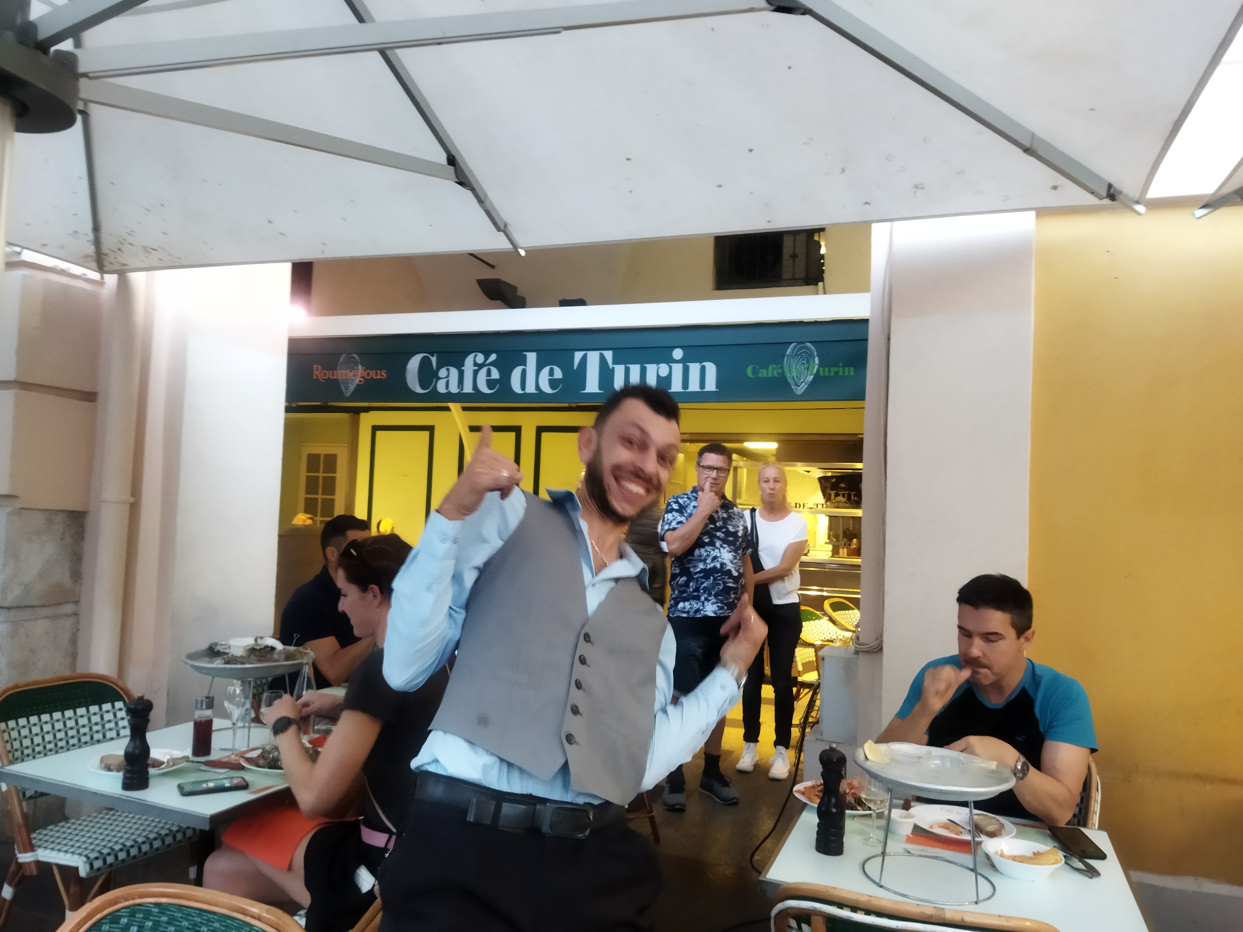 J'adore aller au café de Turin...Endroit mythique . Des huîtres délicieuses, fraîches...A 2 pas de la vieille ville . Que du bonheur ! Le personnel actif, charmant, qui travaille vite et bien et avec le sourire .