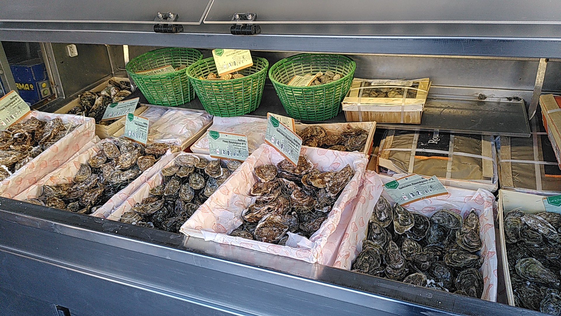 Vente de crustacés a emporter ou a manger sur place !! Beaucoup de débit !! Seul petit hic c le pain avec les huîtres franchement le pain et dure quel dommage les huîtres sont très bonne !! C triste vue le prix et la notoriété.
