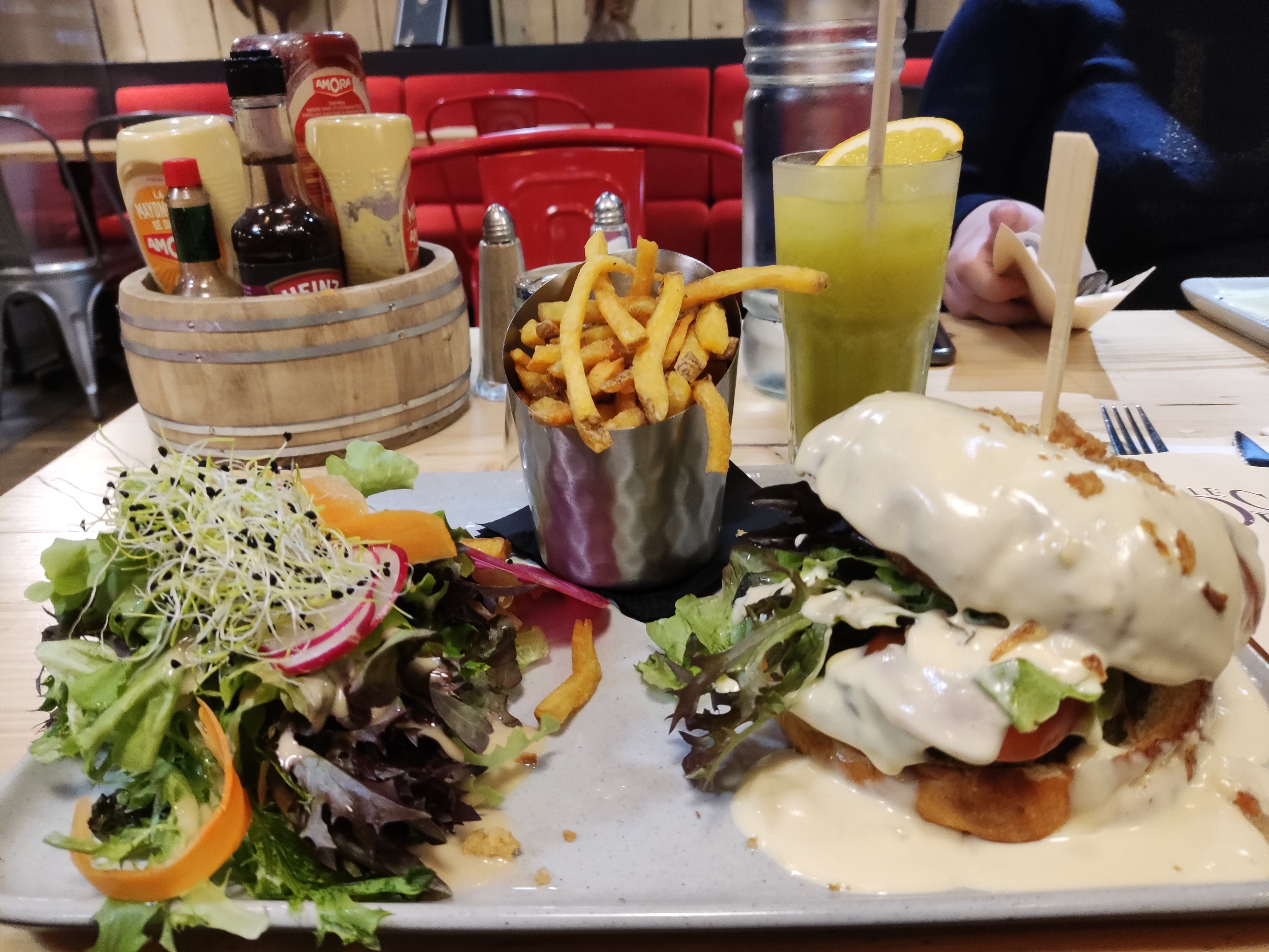 Une adresse sympa et conviviale. Le burger Barbe Q est vraiment super bon et le moelleux au chocolat est pas mal.