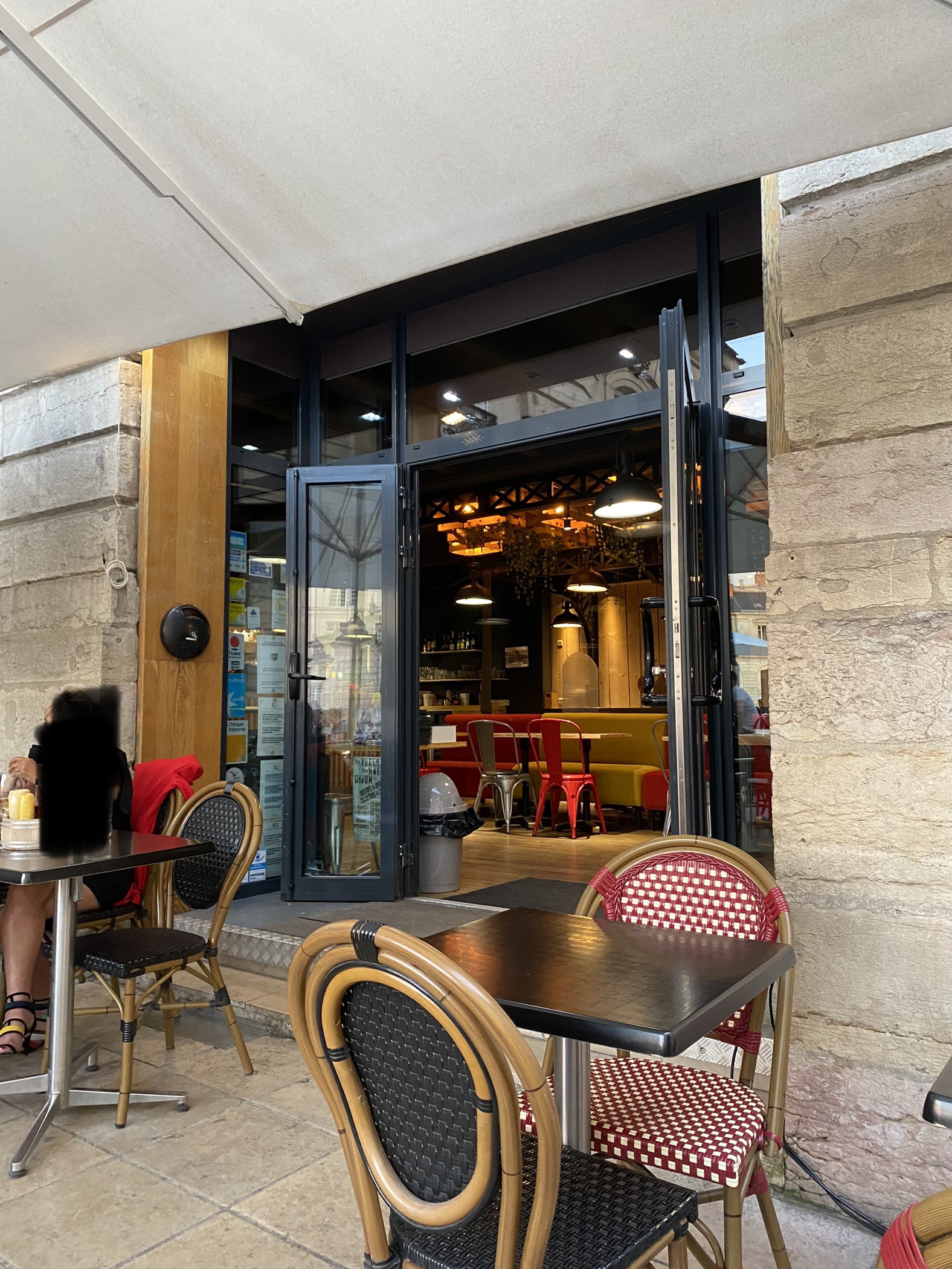 Endroit à la déco plutôt sympa se fondant bien au centre historique de Dijon et de son palais ducal..... restauration correspondant au type brasserie donc rien à attendre de plus.