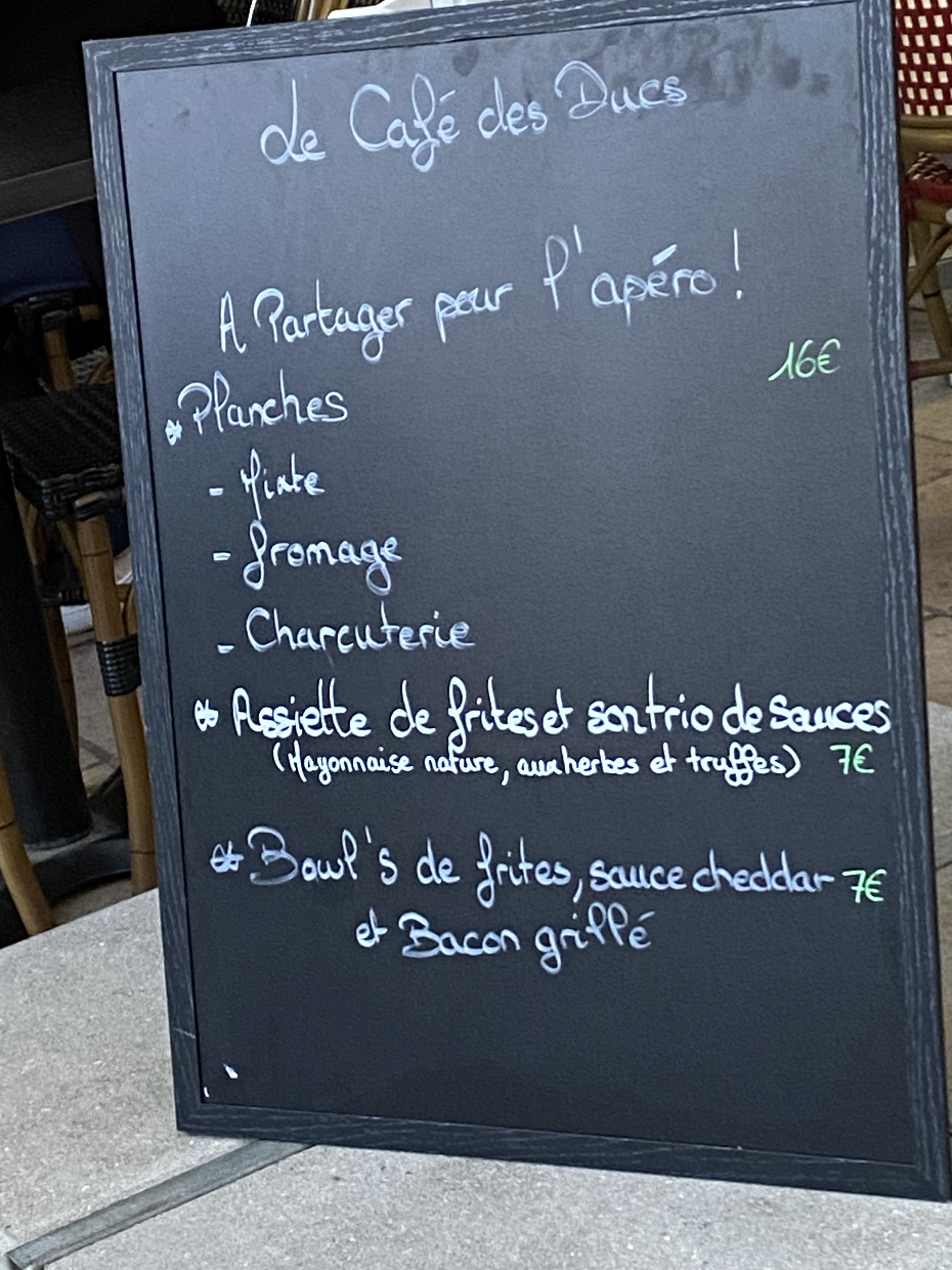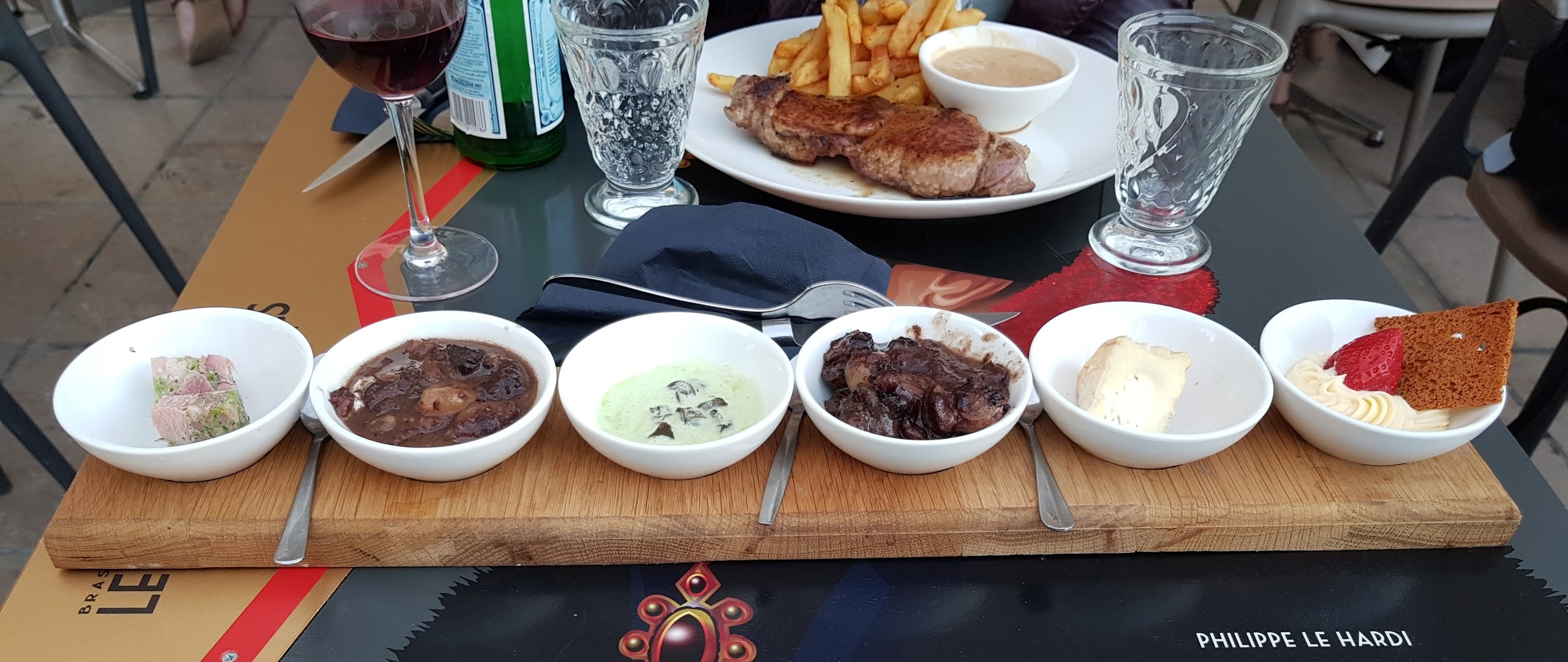 Lieu très bien situé, calme. Serveur souriant et top. Planche très bien garnie, bon rapport qualité/prix. Juste un petit « noir », les toilettes manquaient de propreté.