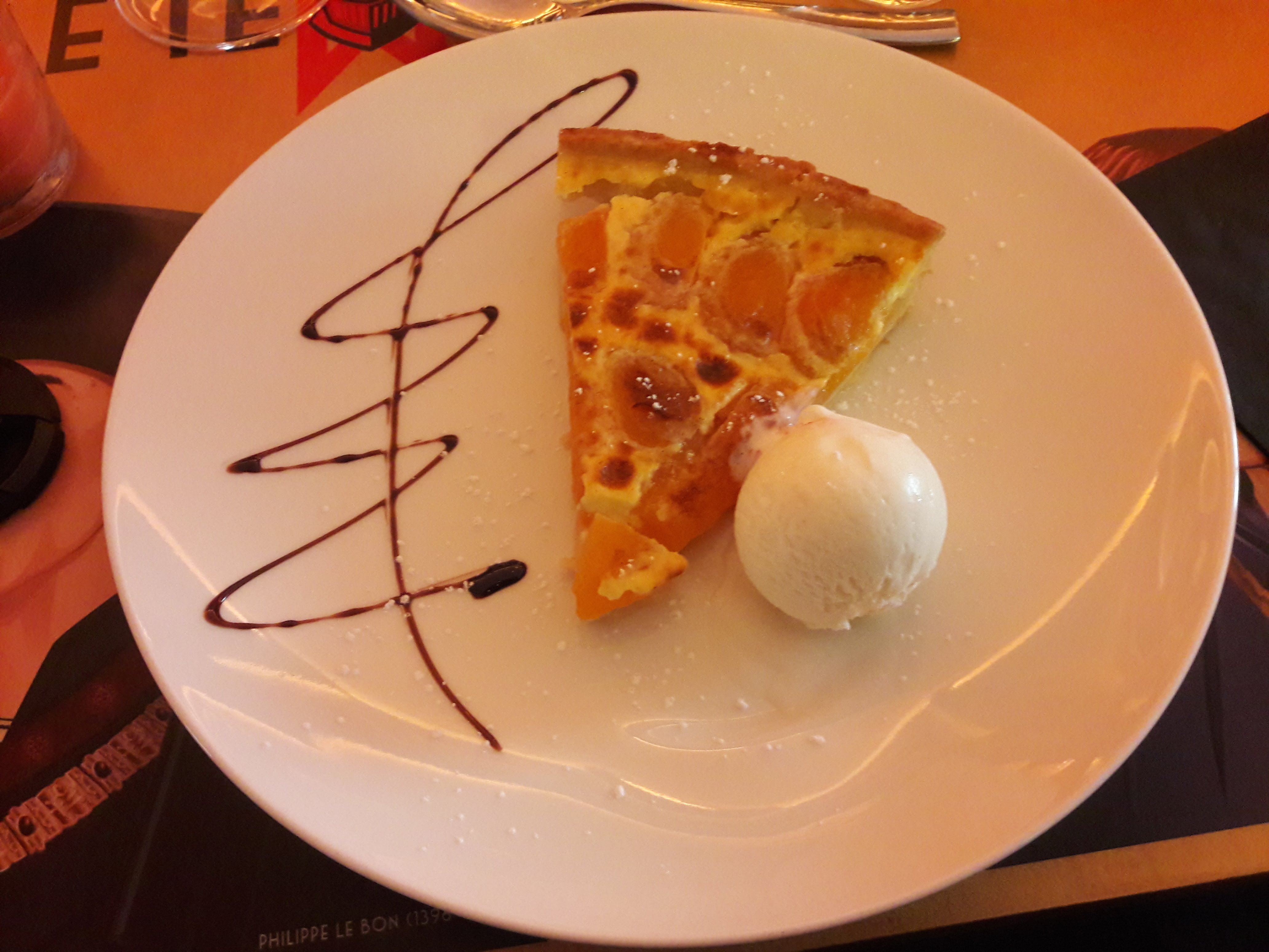 Bonne cuisine, service excellent, endroit calme. Rue piétonne face au palais des ducs Terrasse, adapté aux enfants d'il restent en place. Seul bémol, pas assez de vin de Bourgogne. Ni rosé, ni blanc. Dommage lorsqu'on s'appelle le café des ducs et qu'on se trouve en face du palais. Sinon, ça aurait été 5 étoiles