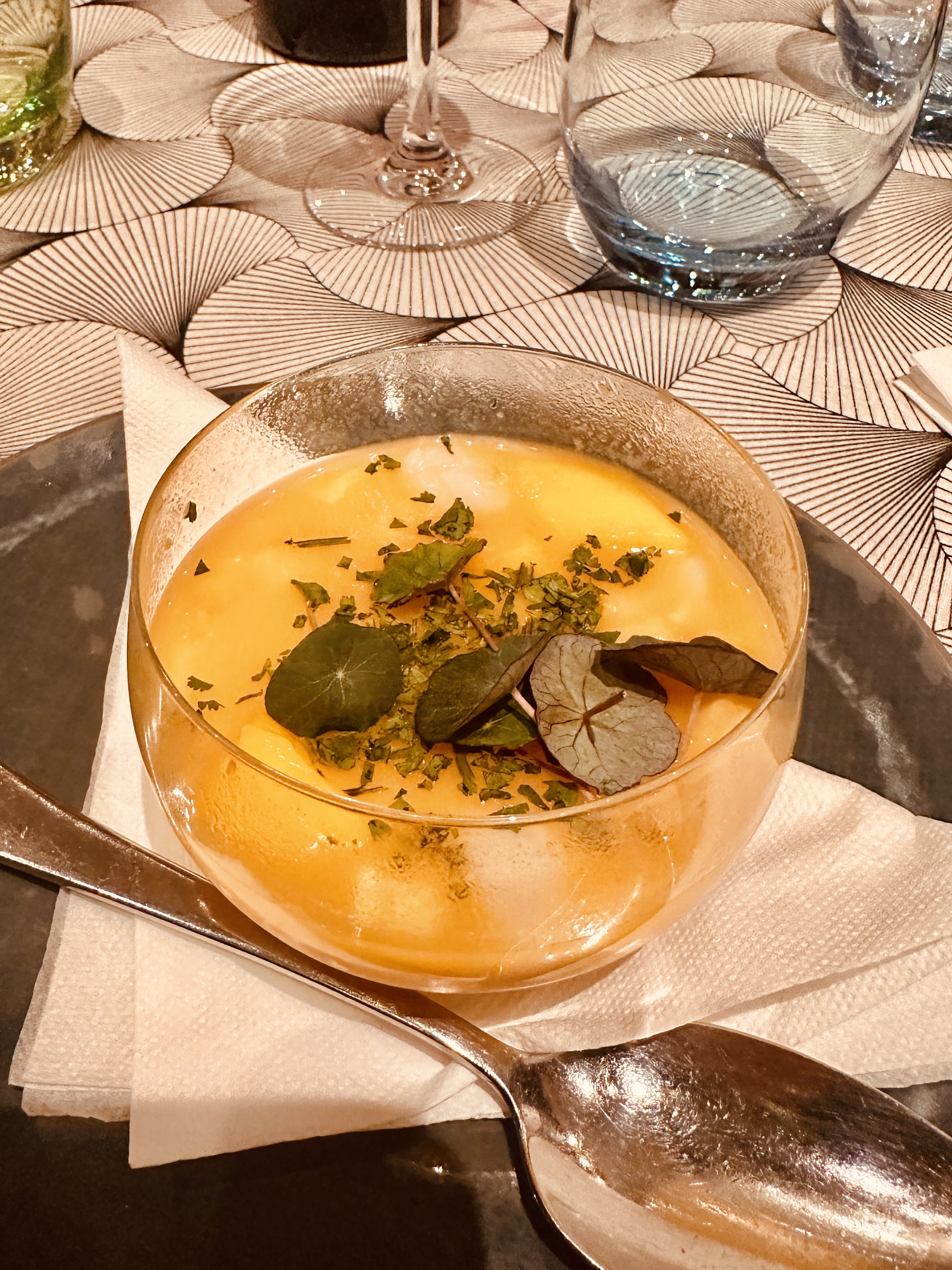 Le restaurant était fantastique, tout comme la nourriture, le service et l'hospitalité. C'est un restaurant chic avec une attention aux détails. Nous avons mangé du saumon gravadlax, du turbot et de la pavlova à la mangue. Délicieux et tellement savoureux. Hautement recommandé! Merci