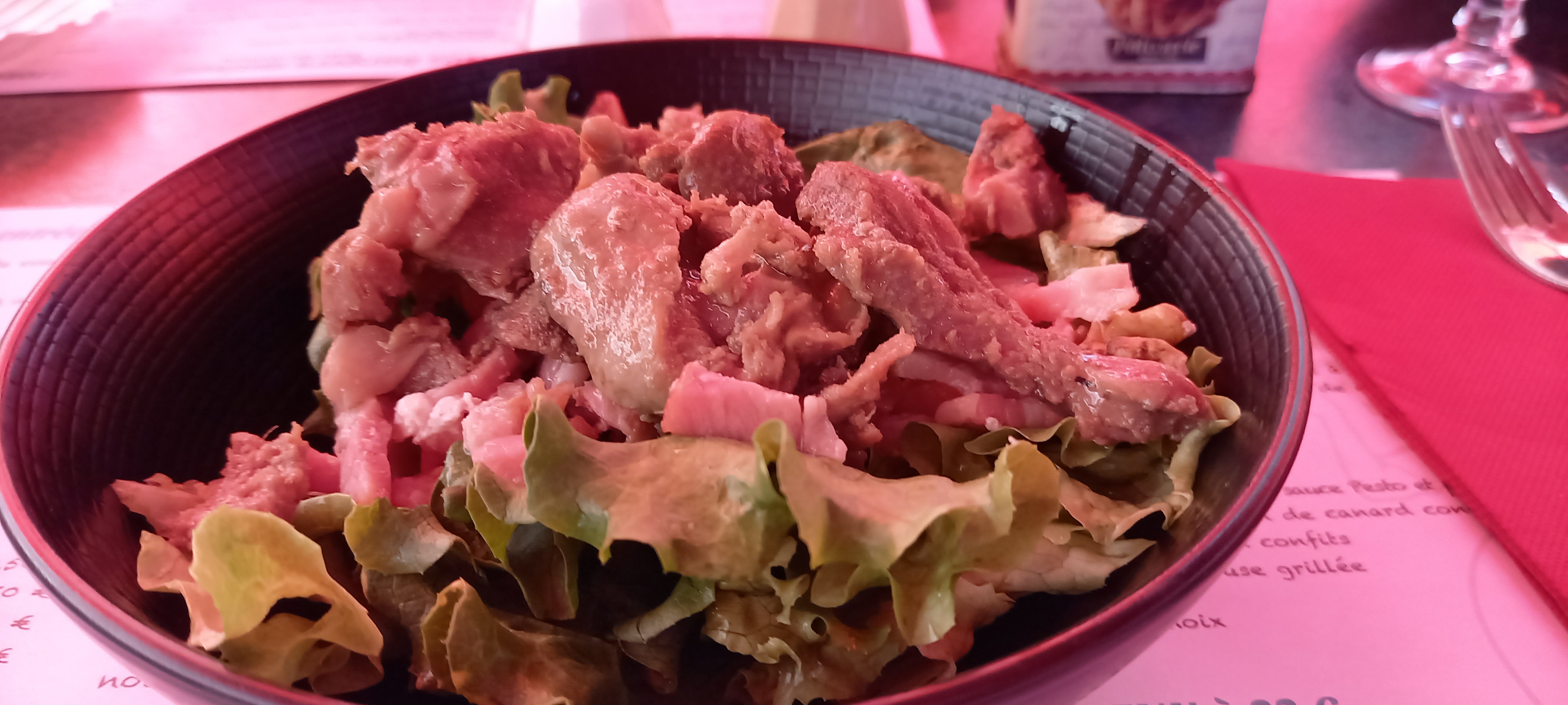 Si vous recherchez une cuisine de terroir passer votre chemin car ici c'est de la cuisine rapide. C'est à dire frites surgelés trop grasses, vinaigrette industrielle..... voir photos. Le plus dérangeant en ce moment c'est que les gestes barrières ce n'est pas vraiment d'actualité. Toujours autant de tables, masques portés en dessous du nez et même plus bas pour certains des serveurs et oubliés en cuisine. Bizarre d'avoir un restaurant comme ça en centre ville de Gramat. Il en faut pour tous les goûts. Dommage pour la gastronomie locale.