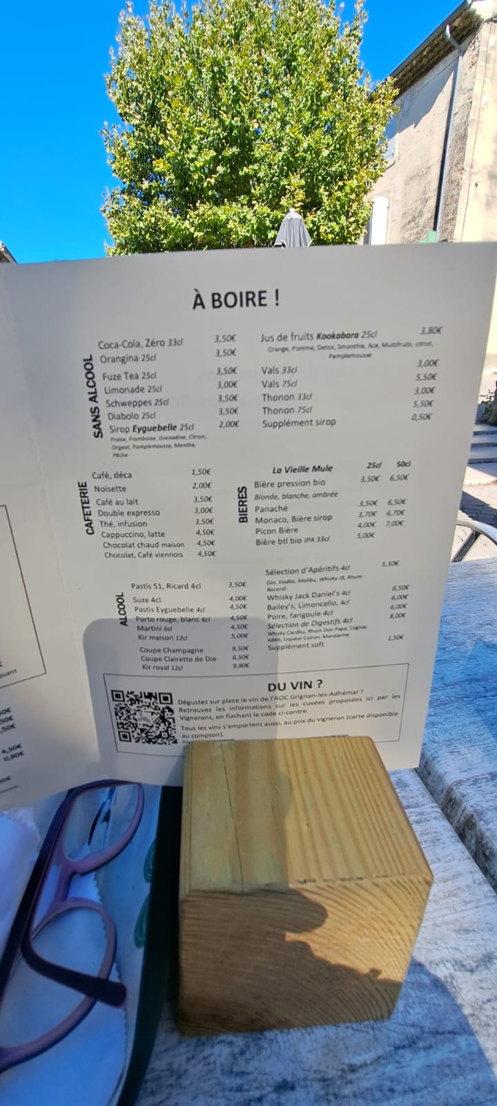 Jolie terrasse en plein cœur de ce joli village. Consommation pas excessive : 1,50 euro le café