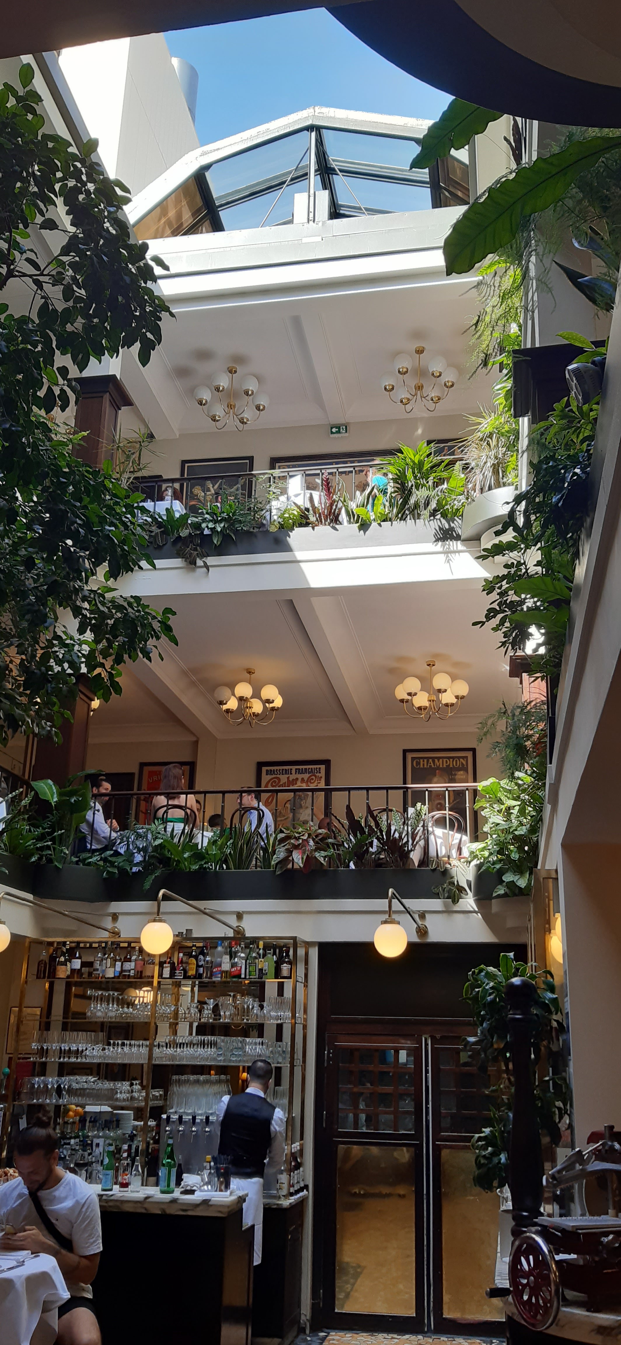 Lieu sublime, en tout particulier si vous avez l’opportunité de manger au dernier étage avec la verrière ouverte. Service impressionnant, avec un poil de comédie à la parisienne, et surtout très arrangeant. Les plats sont bons, un chouïa chers, mais très copieux.