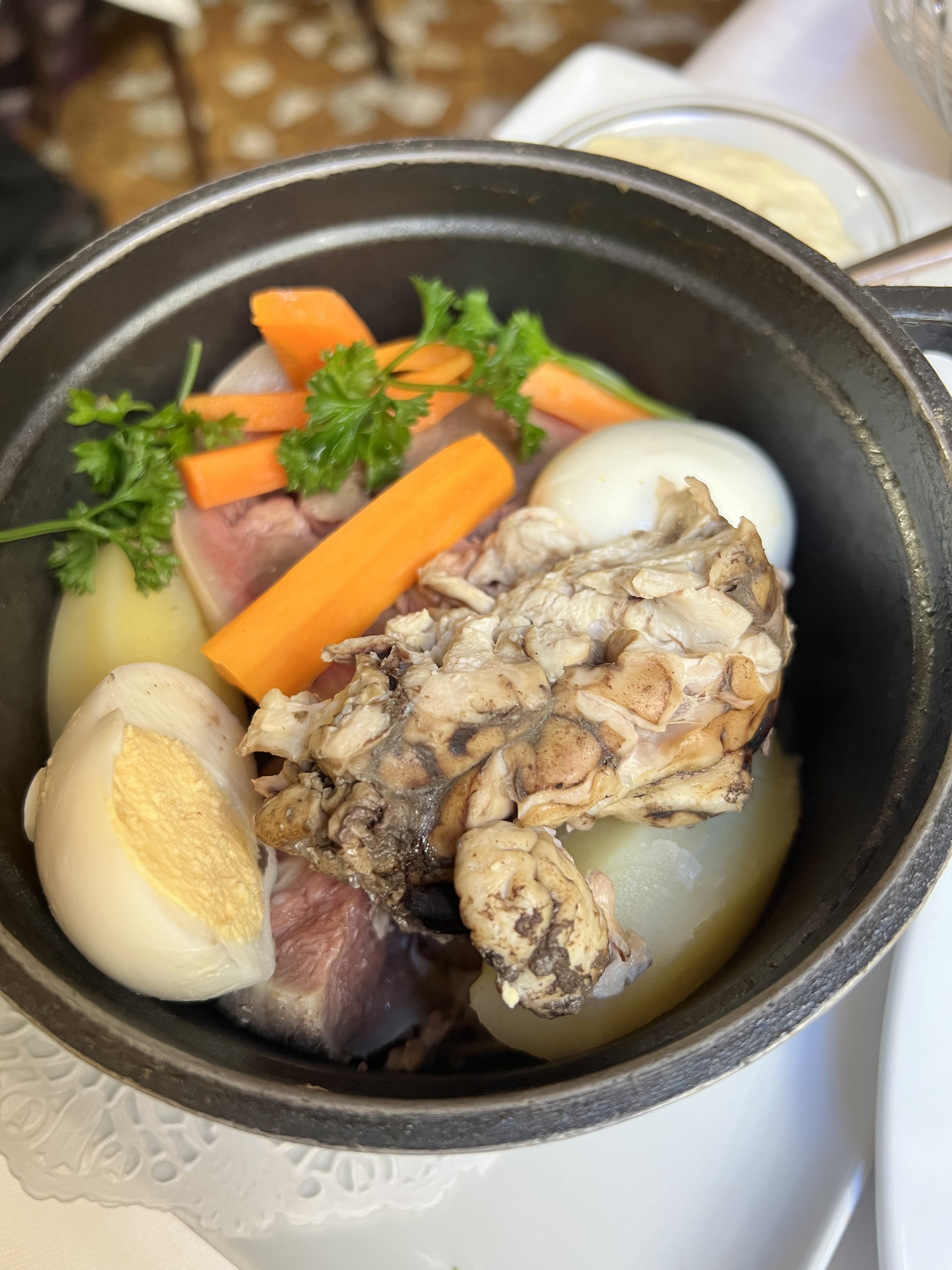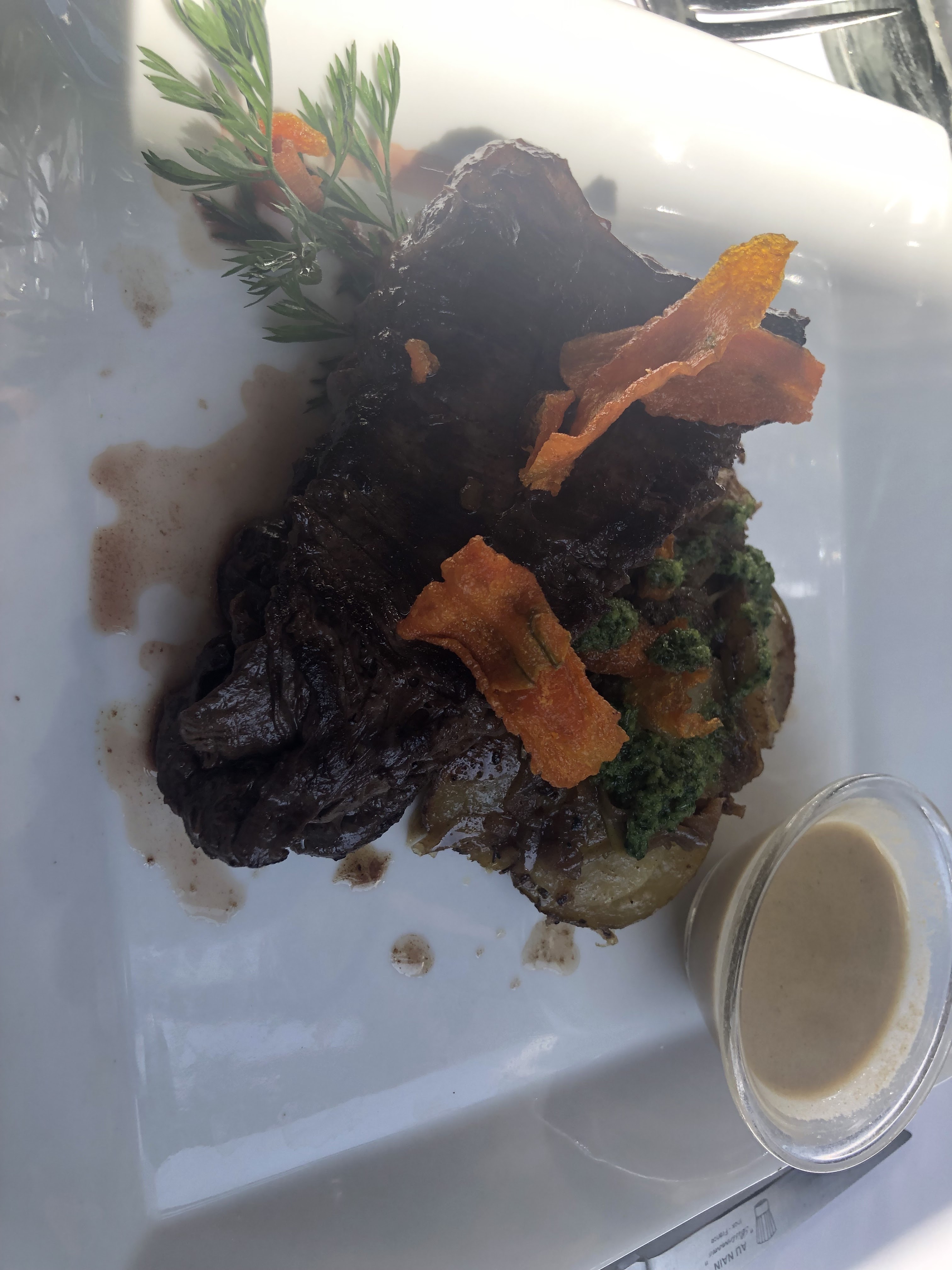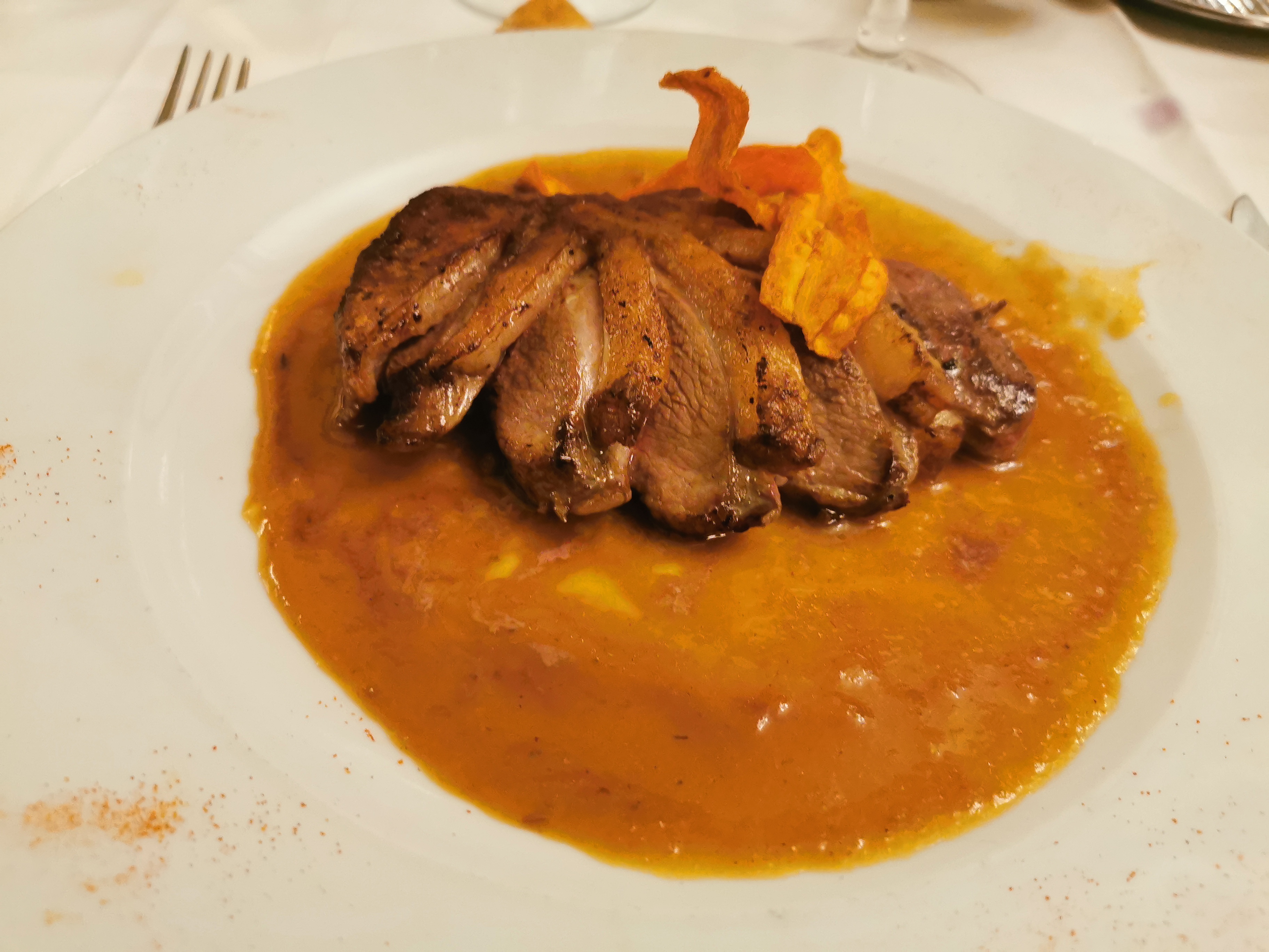 Dans l’ensemble c’était une expérience « ok ». Je m’attendais à mieux j’avoue. Le cadre est sublime ! La cuisine est une cuisine française classique. Nous avions pris des ravioles qui sont un peu écoeurante à la fin mais étaient très bonnes! (Peut être qu’on a moins l’habitude je ne sais pas). Le magret de canard n’était pas assez croustillant à mon goût mais bien. Les desserts étaient pas forcément un bon choix (crème brûlée et moelleux, qui étaient froids en plus ..) Le service par contre, rien à redire !! Très gentils et professionnels