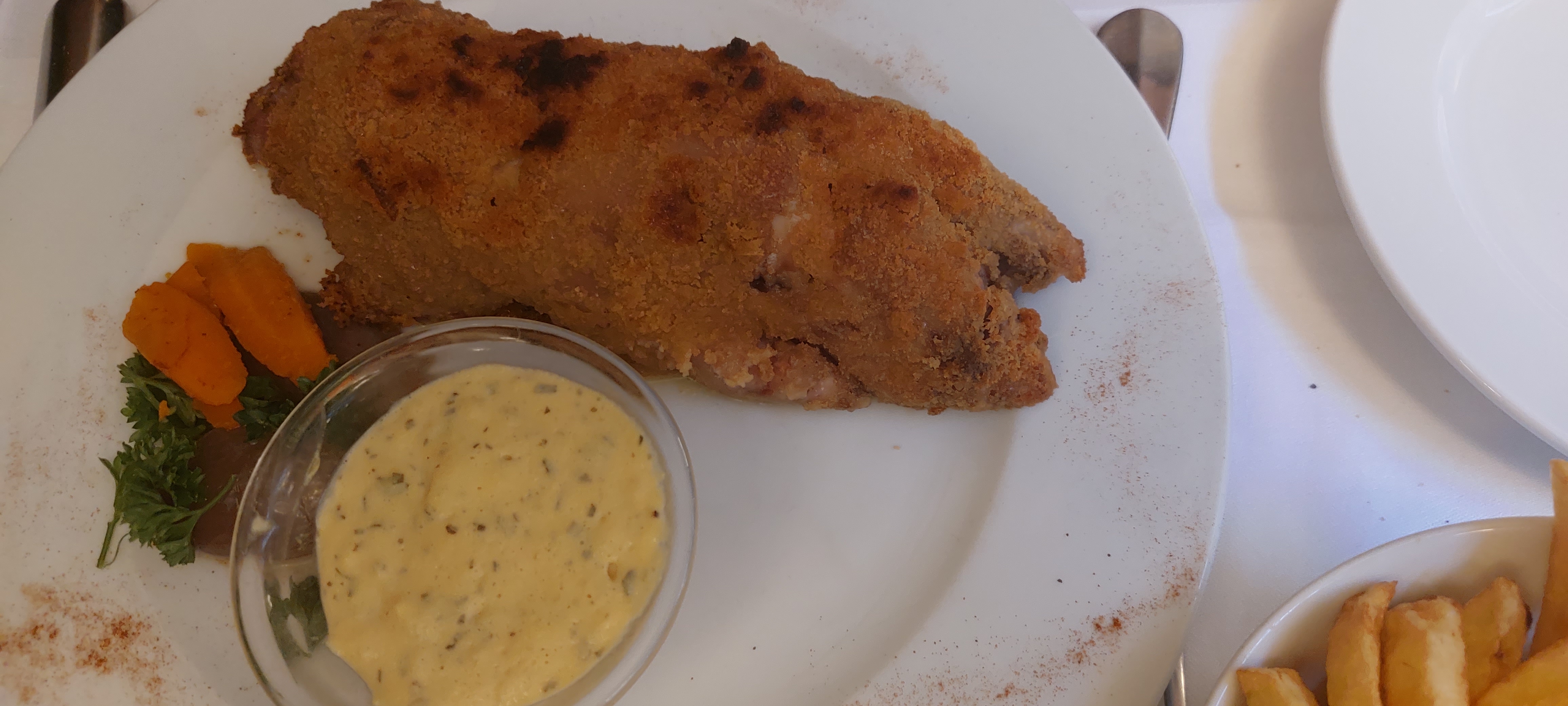 Une chaleur suffocante, et une attente interminable... Nous sommes rentrés dans le restaurant à 19h00, les entrées sont arrivées à 19h30..puis on a dû attendre 21h00 pour enfin manger nos plats principaux, avec des frites.... froides!!! À savoir que quand les plats sont arrivés, mes enfants étaient en train s'endormir. À éviter à tout prix.