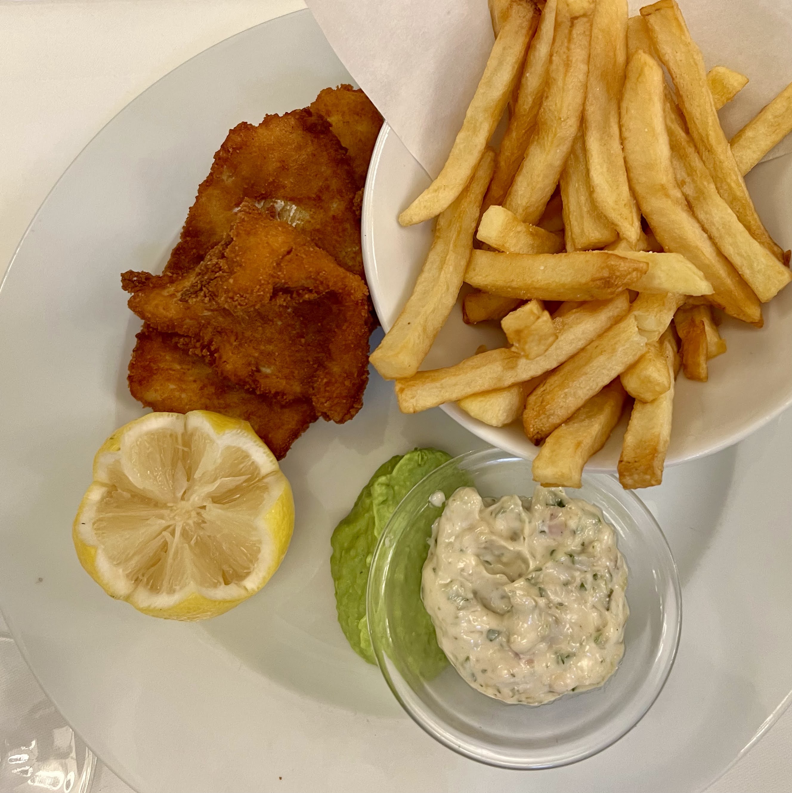 Ne soyez pas découragés par une devanture qui ne paye pas de mine - à l’intérieur vous attend une brasserie charmante sur 3 étages très joliment décorée! La cuisine typique d’une brasserie : poulet - frites ou fish and chips ne vont pas vous décevoir et l’ambiance parisienne va vous accompagner tout au long de votre repas !