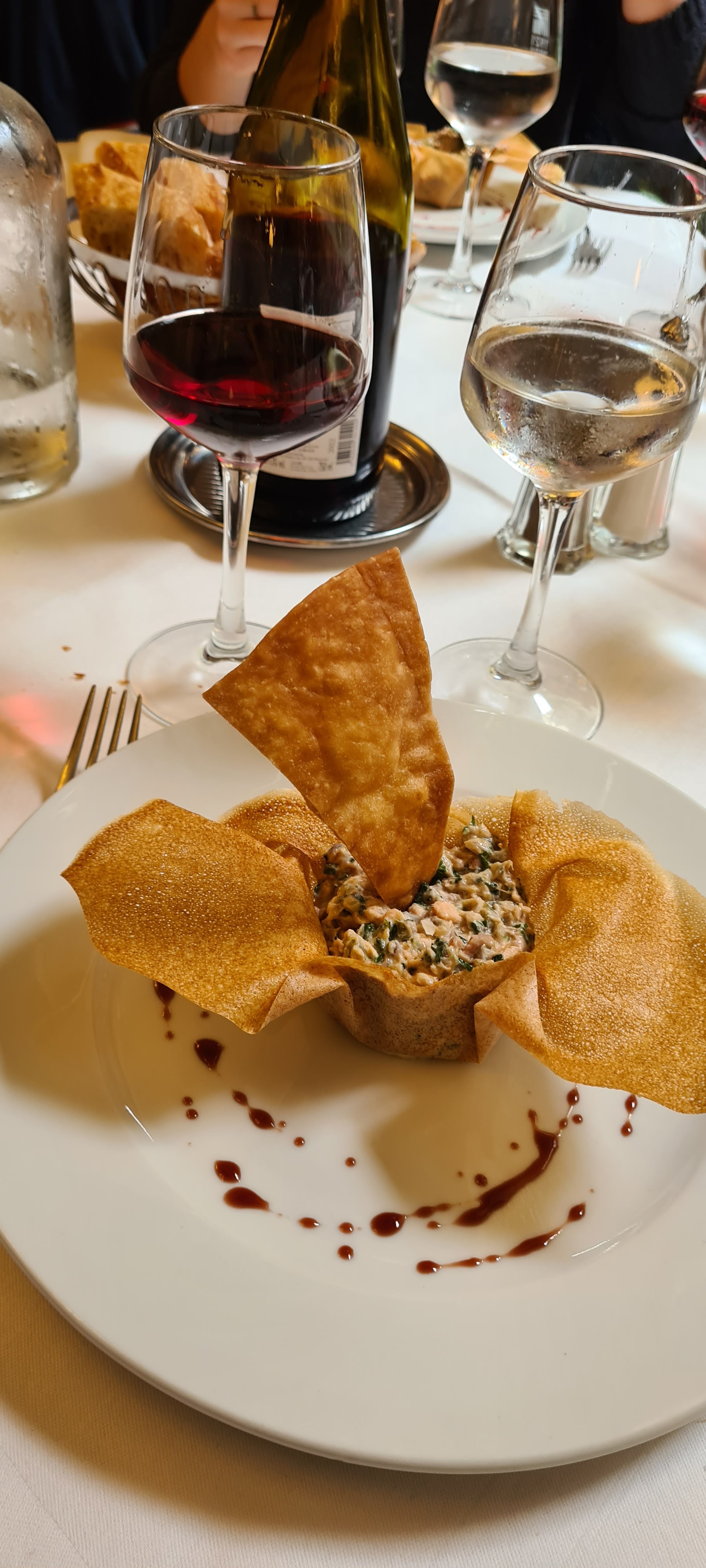 Nous avons reçu la carte des vins quelques minutes après avoir commandé l'entrée et le plat principal, après plus de 20 minutes d'attente, nous avons reçu nos deux plats principaux et 10 minutes plus tard, notre vin blanc est arrivé. Après une demi-heure à demander et à demander nos entrées, c'était une commande incroyable. Aucune explication de la part des serveurs. Après avoir commandé un dessert, ils m'ont dit que c'était pour nous, c'est gratuit. et réservez ce restaurant!