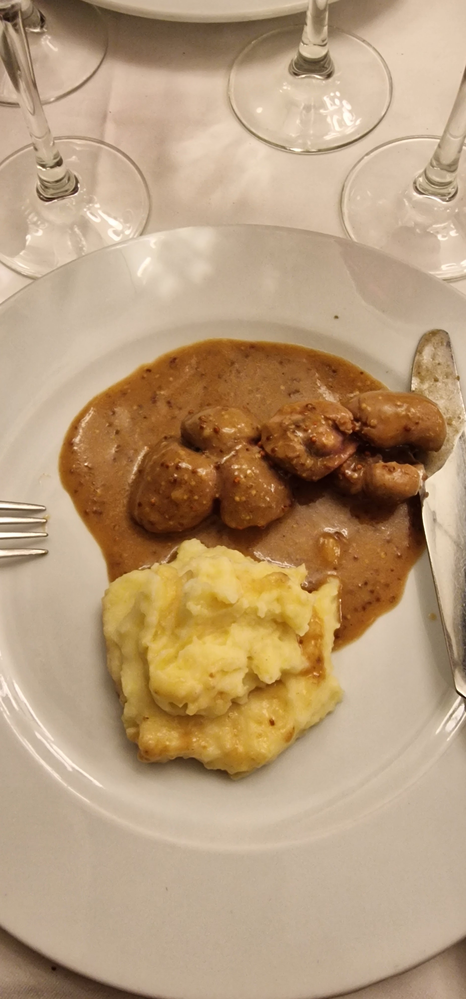 La soupe à l'oignon était une honte, mes amis ont trouvé l'escargot réussi. Même si j'avais demandé que le filet soit cuit, il est arrivé cuit en 3 heures. Les serveurs ont coupé le pain en le tenant avec leurs mains, il n'est pas propre.