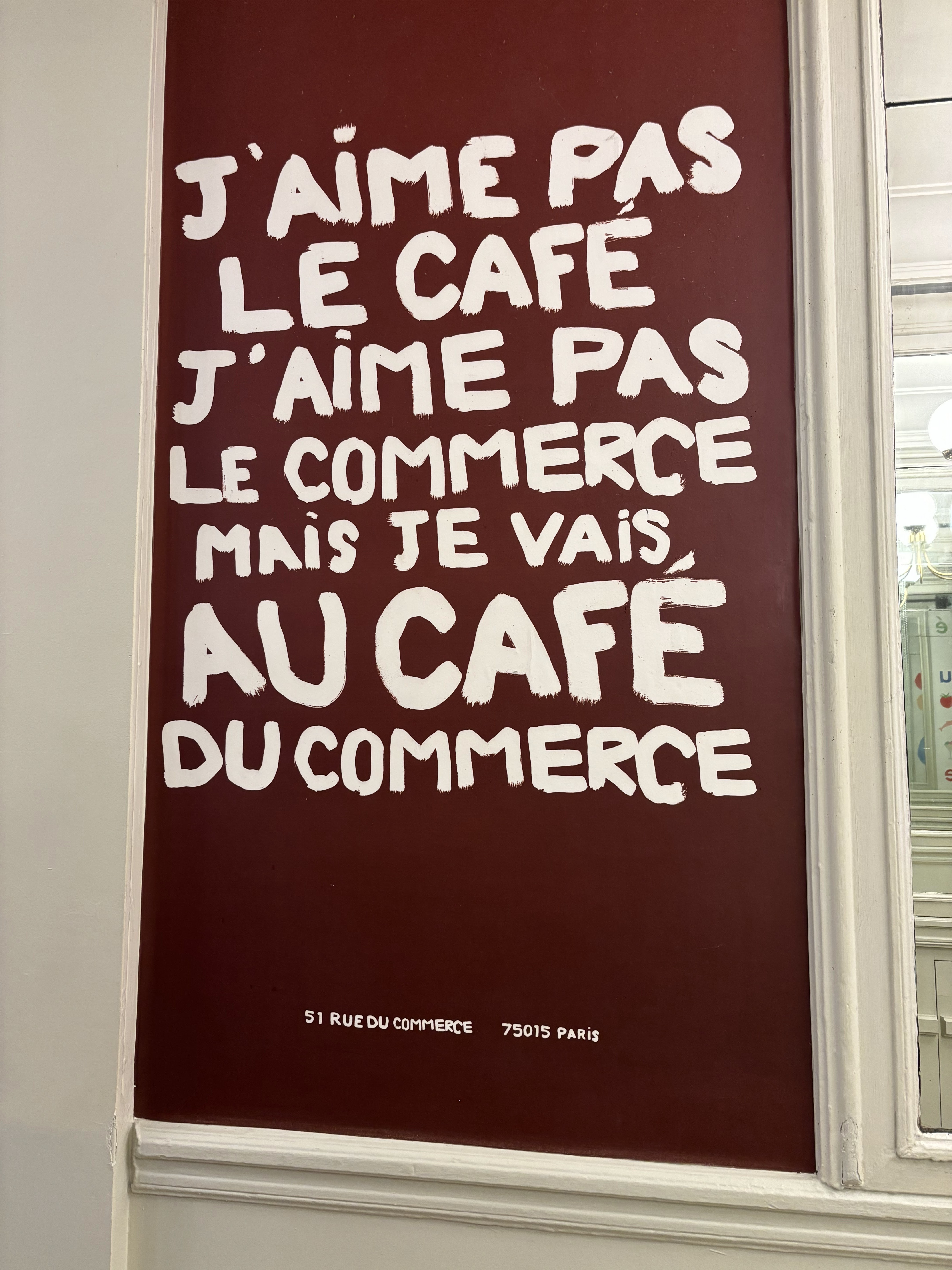 Si si! Parfait endroit qui ravit autant les papilles que les yeux! C'est coloré, c'est accueillant! Ambiance toute parisienne, et c'est ce qui en fait son charme - en fermant les yeux, vous pouvez vous imaginer à la Belle Époque - pour l'Héraultaise que je suis! Le Café du Commerce répond tout à fait aux critères qu'il s'est fixé !