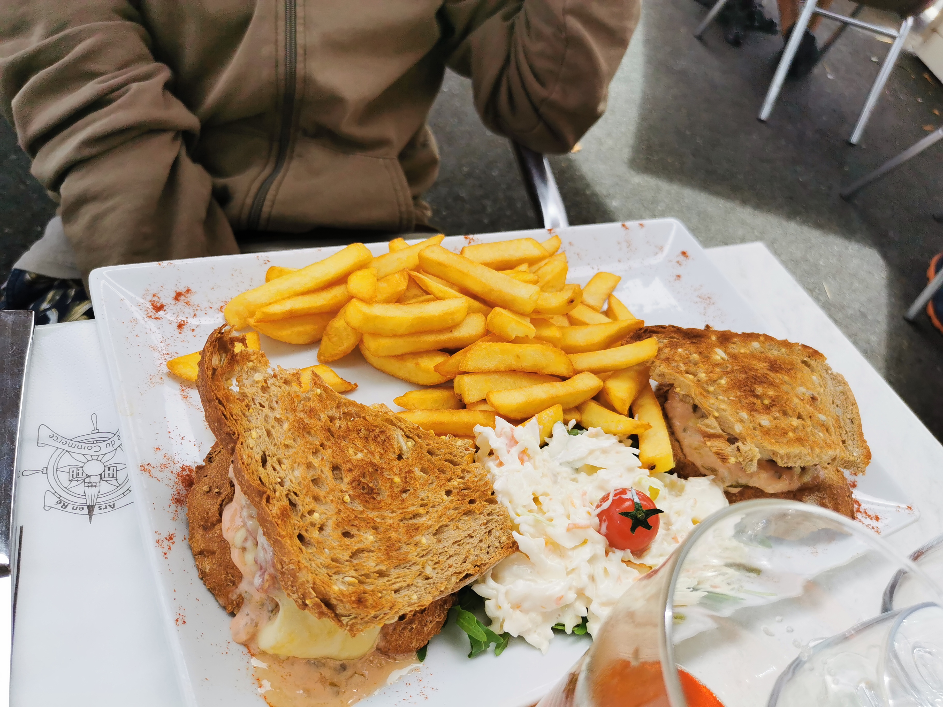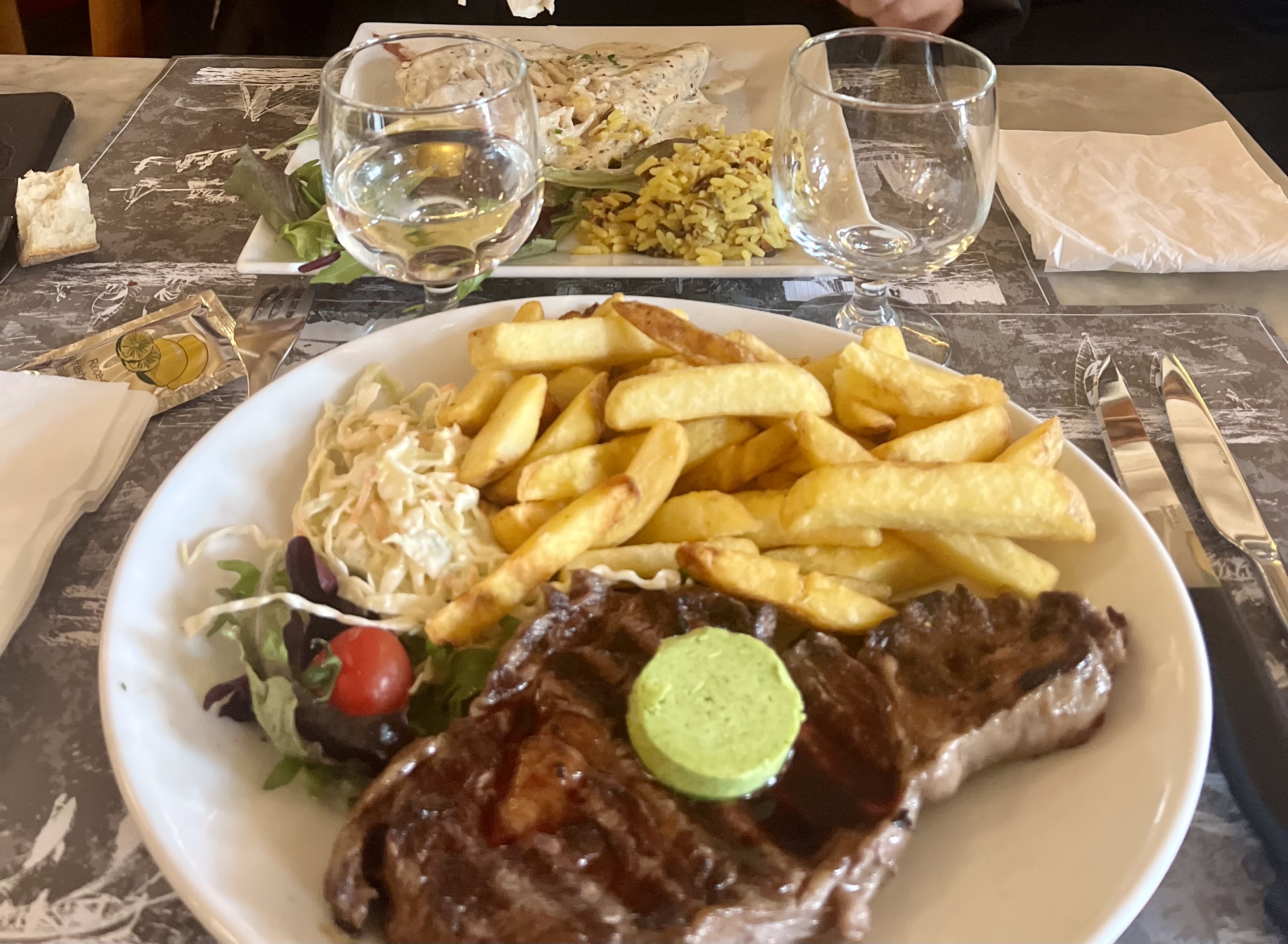Un bel endroit pour un déjeuner improvisé aujourd'hui en se promenant dans Ars en Ré. Nous étions assis et servis rapidement, et le serveur sympathique nous a donné le temps idéal pour choisir nos boissons et notre repas. Le pain déposé sur la table était gratuit et ne constituait pas un piège pour vous soutirer quelques euros supplémentaires, contrairement à certains restaurants. Les moules avec frites étaient délicieuses et d'une grande aide ; nous avons décidé de les partager et c'était largement suffisant ! Nous avons choisi de nous asseoir du côté du port, bien qu'ils aient également des sièges de l'autre côté de la route et à l'intérieur du bâtiment lui-même.