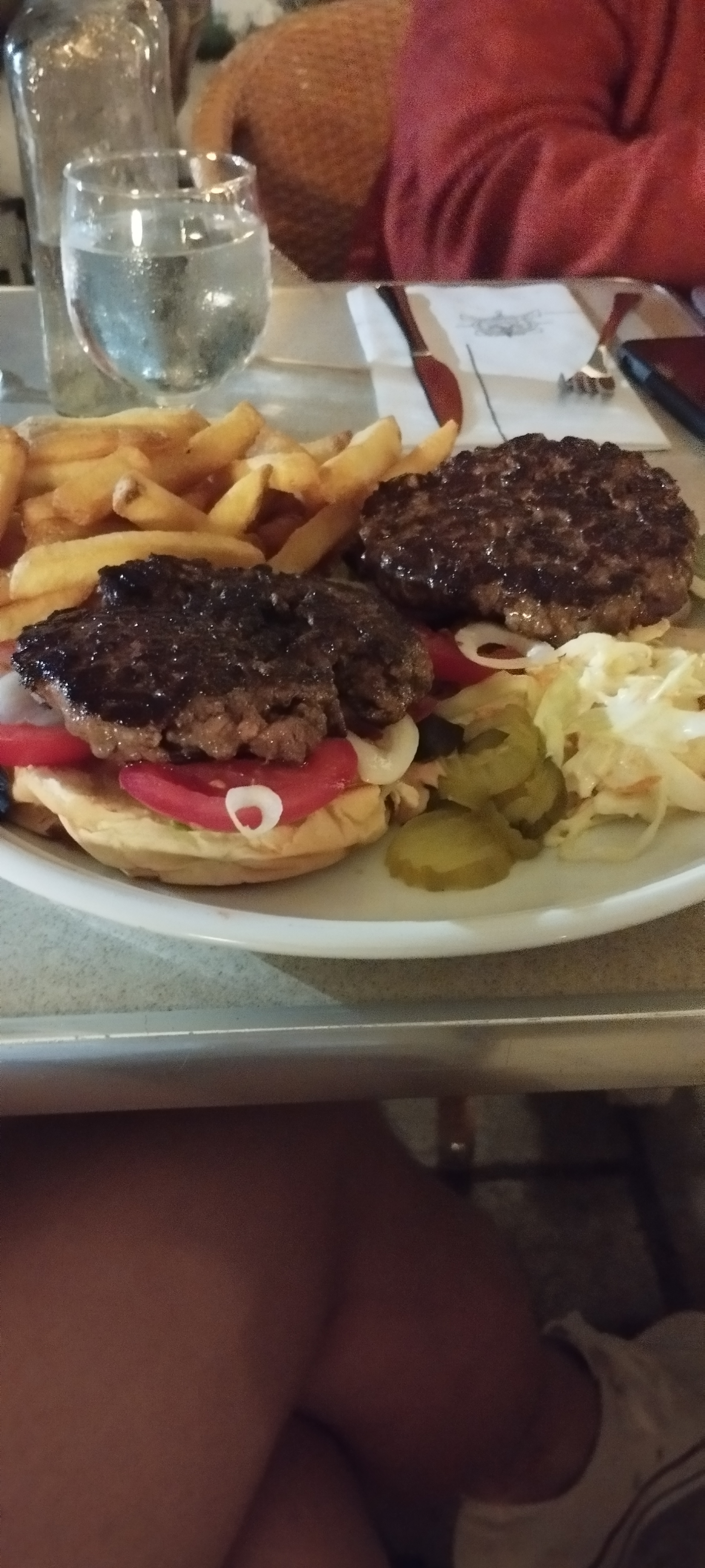 Les repas étaient très copieux, nous avons très bien mangé. Les burgers ont des cuissons parfaites, celui testé était le chili burger ( une tuerie ). Les frites sont aussi très bonnes.