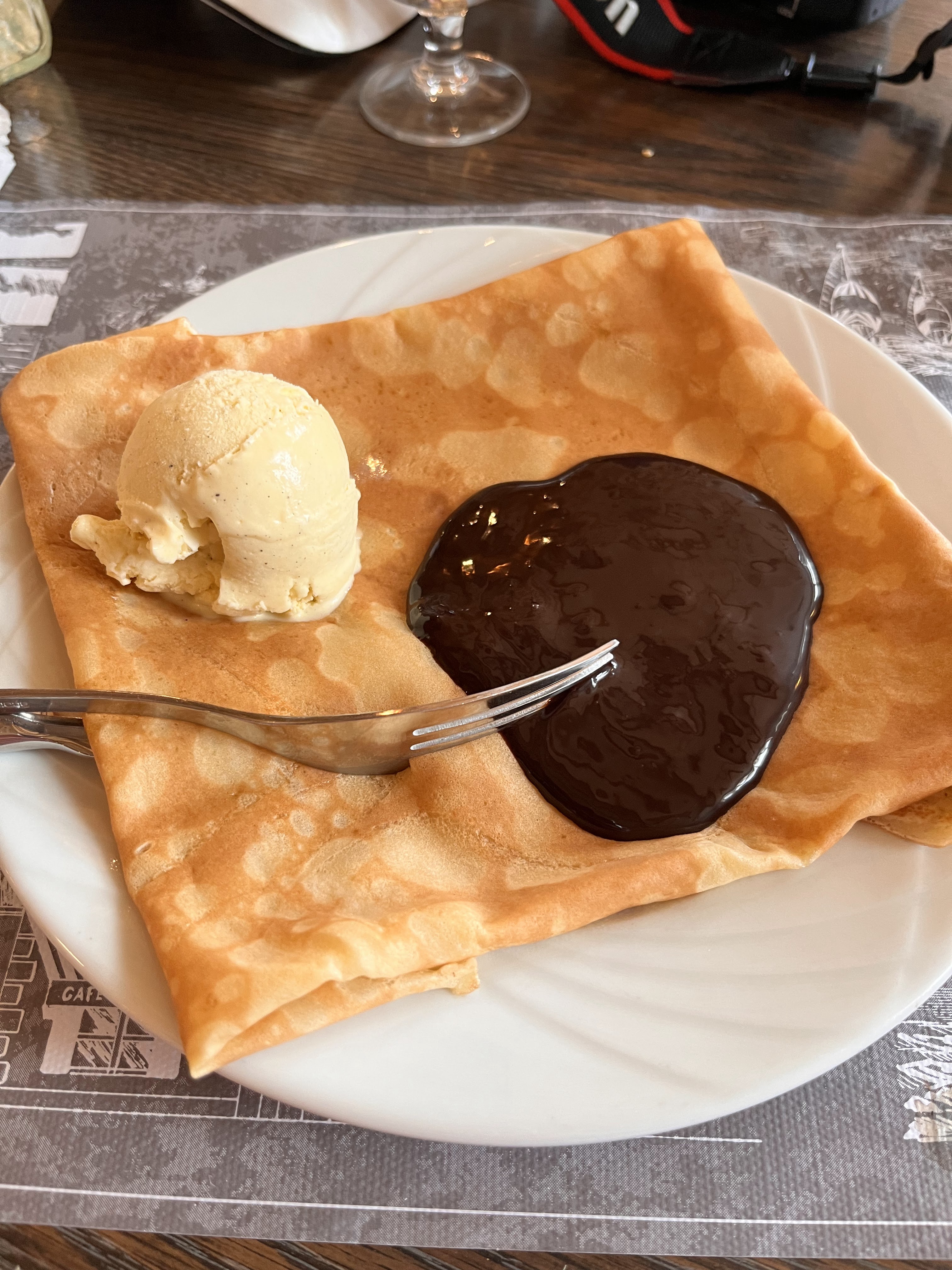 Les crêpes autant salés que sucrées n'étaient pas bonnes. Concernant les autres plats, c'etait plutôt correct. Évitez les desserts qui sont, de toute évidence, réchauffés. L'ambiance est pour le moins sympa et le cadre est très agréable.