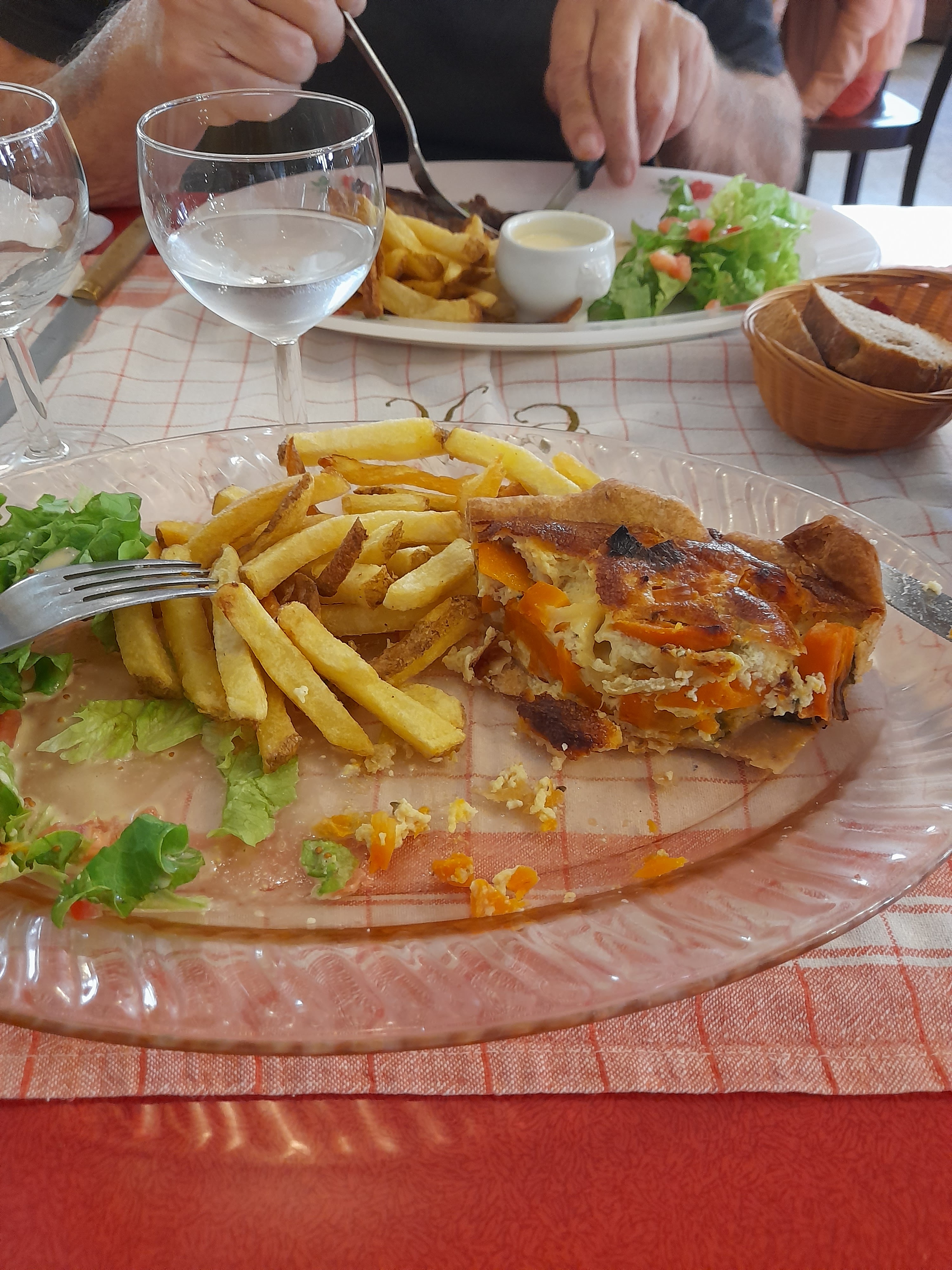 5 personnes dont une enfant très bon accueil cuisine traditionnelle avec de bons produits. Cadre Sympa grande salle bistro restau. In a a adoré à refaire et à recommander